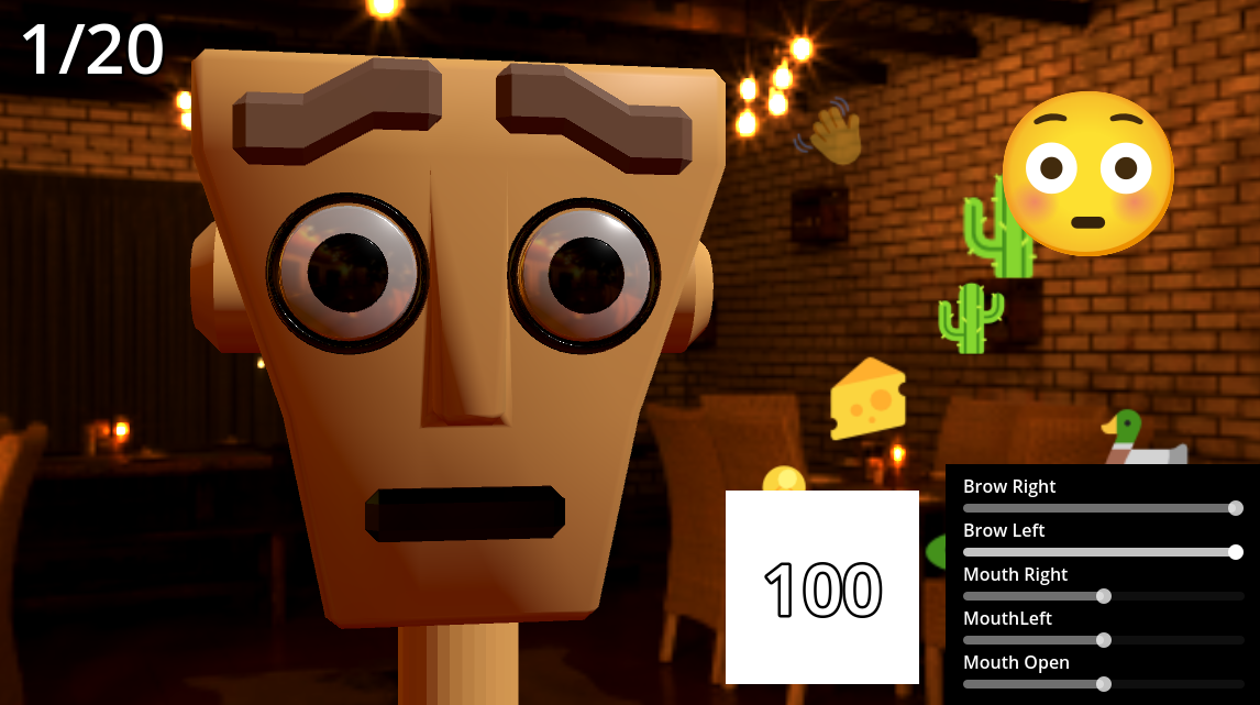 The bug is in the art. This was my first time playing with shape keys, and the expressions turned out to be extremely wonky. I decided to lean into it, and built the game around the broken face.