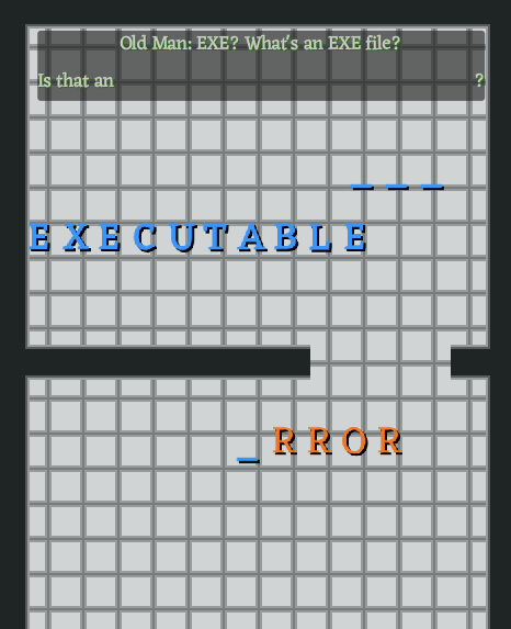 Consequently, this is a trap that was explicitly designed, because if you take the blue E from "EXE" to stick into "EXECUTABLE" instead of the orange "E" from EXE, you're hard-locking yourself out of solving the level, because "EXECUTABLE" now can never be activated, as it only has blue letters, and you cannot swap letters without a space available, so you're locked out of the solution.