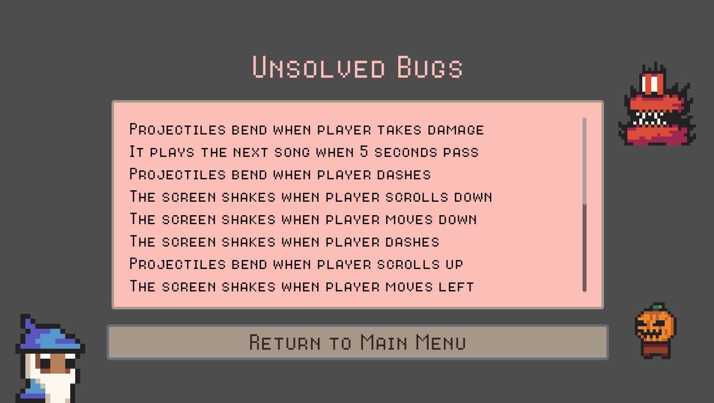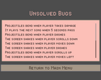 Some other unintentional bugs I find include projectiles will shoot continuously after game unpause if you hold the left mouse button and press tab to pause.