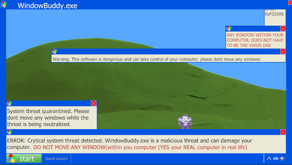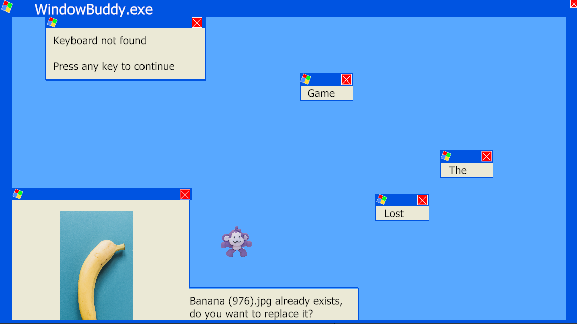The game is controlled by dragging windows (not excluding the game one).