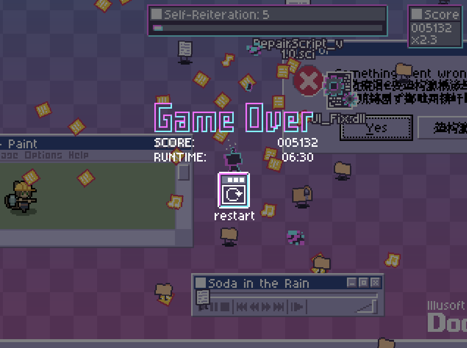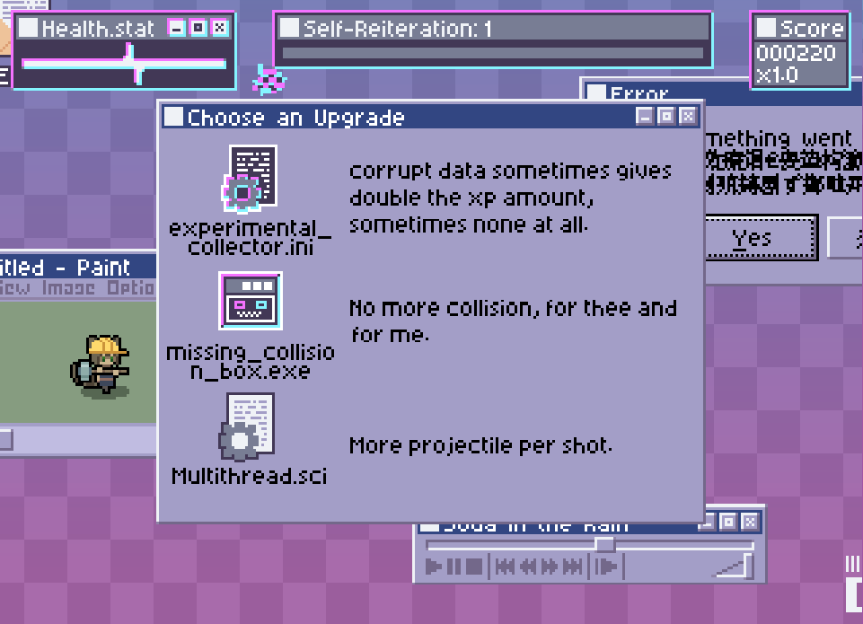 For me personally, I really enjoyed the gameplay, though I feel like the start can be a bit of a slog. the fire rate and movement speed are pretty slow initially and upgrades to those increment pretty gradually, so it becomes much more methodical rather than run and gun. But this is more a matter of taste than anything else. The combinations of errors were pretty interesting overall and you had a decent variety. There were a good amount of monkey's paw type things where i really had to decide if the glitch is worth it for me, which is pretty neat.