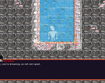 The swimming state change hook was a good one. I did it accidentally before I realized what I was doing. The first interaction with that mechanic in particular might have been better in a larger room, but it worked out anyway. Overall the player character is quite big and navigating can be quite clumsy, but it's not too bad. Great work!