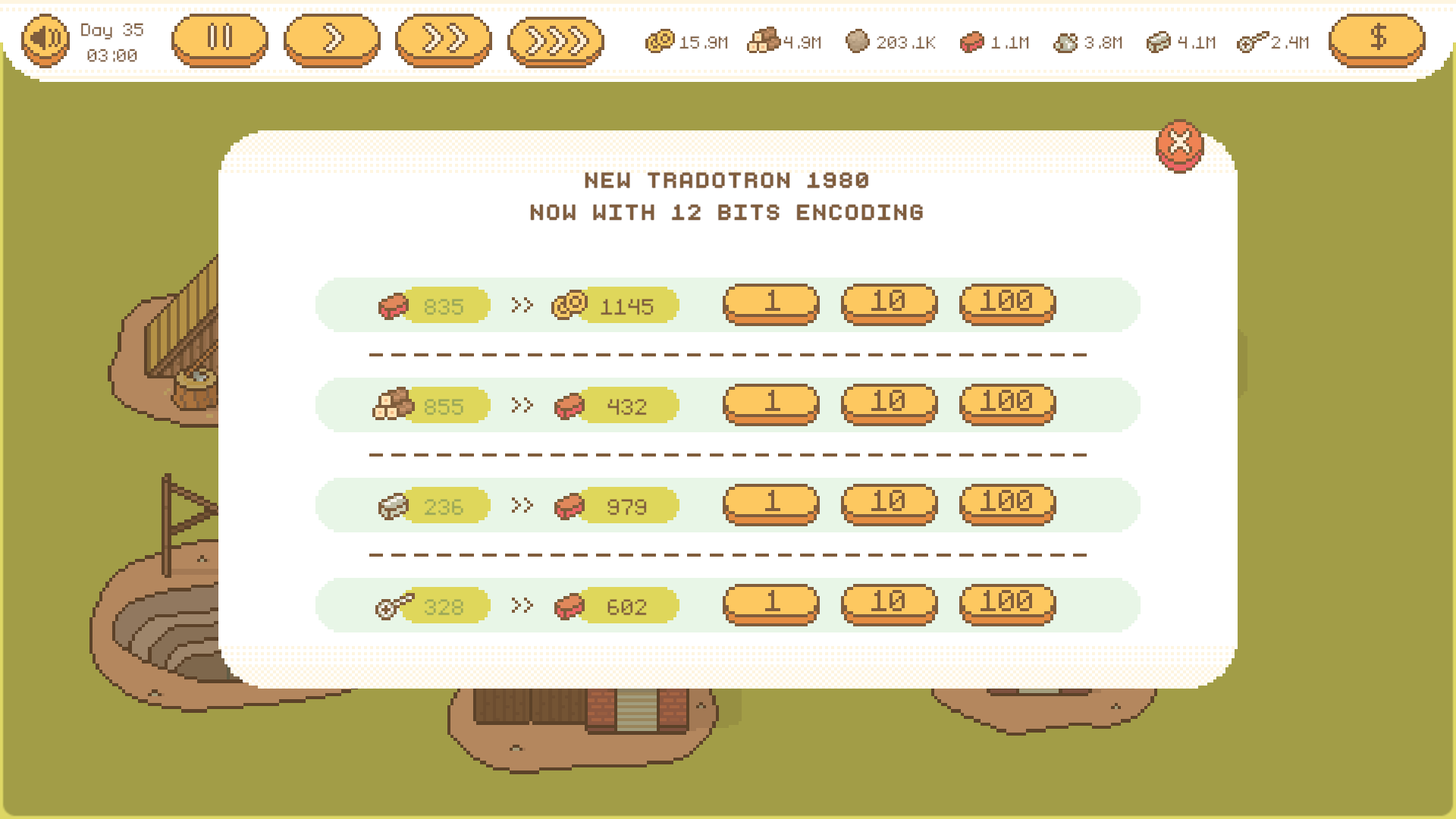 I noticed the market exploit completely by accident when I noticed that my resources weren't going down as I continuously spammed the x100 button. That was in my second run after a 40 day run because I was just vibing to the ambient music. Pretty well done, cramping my hand was definitely worth it.