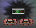 Bombs with 60-second timers fall endlessly. However, the actual length of a 'second' varies for each bomb and becomes shorter as the game progresses. The beep sound that plays each 'second' audibly represents time, emphasizing the OUT OF TIME theme.