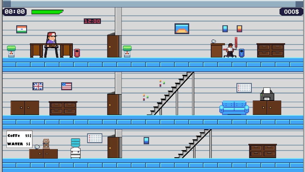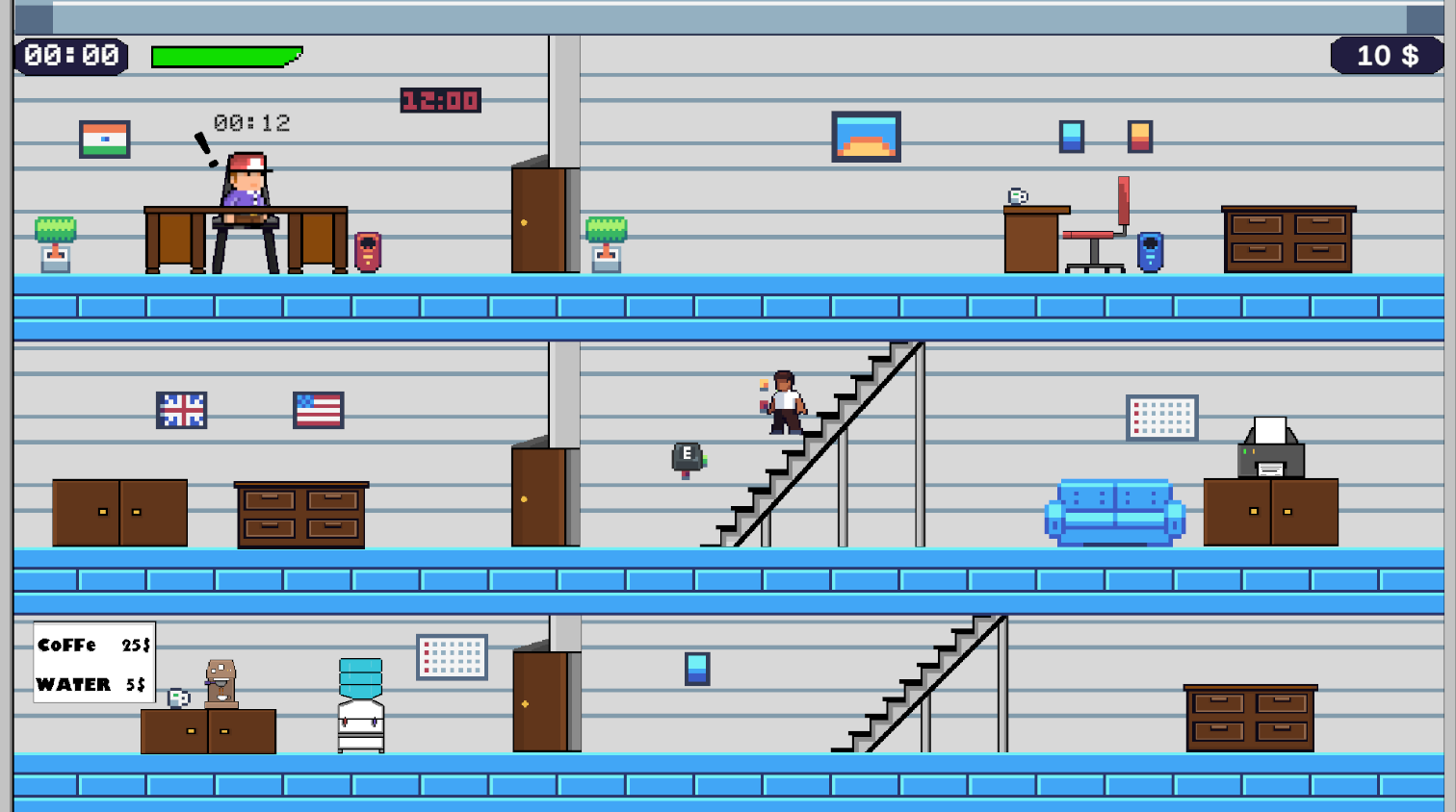 Coffee is needed! Enjoyed this simple little game. I think you did great on the UI and making things pretty clear about where and when to go to places. I think the only thing that I didn't understand first couple of times around were that the green bar at the top was my energy which affected my speed.