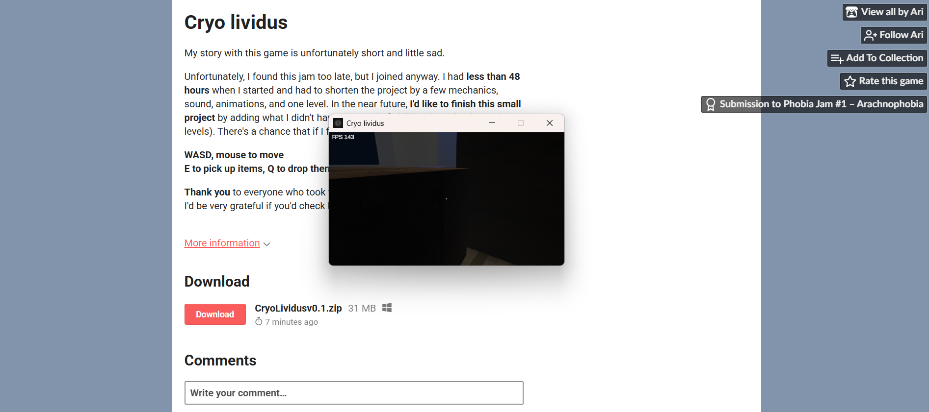 Cryo lividus's itch.io pageGame Title