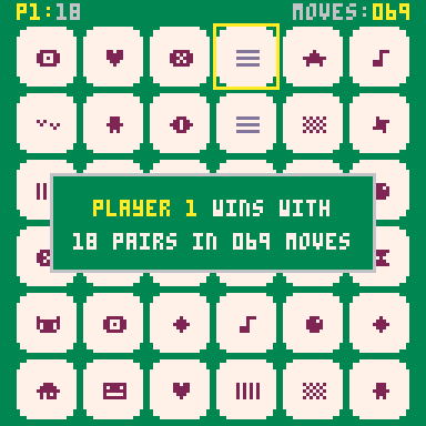 This is great - it's got all the essential elements (+even SFX! Very impressive that you even got a menu and player mode also. Love the use of checker board (FILLP) to do card backs, very effective! Nice one! 👍