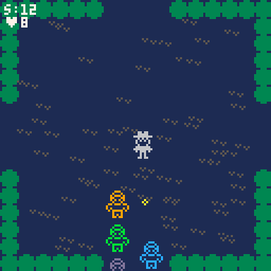 if(q.i>0and abs(q.x-w.x)<8and abs(q.y-w.y)<8)w.l=0if(q.l>0and q.w<1)q.l=0q.o=1q.a=w.a q.v=2q.t=64s+=1f="\acde"break