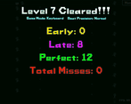 It is also a great touch that you let the player know if they were early or late. Did you try to make it somewhat of a "real-time feedback", so players can see right away if they were early? Maybe that could also work.:)