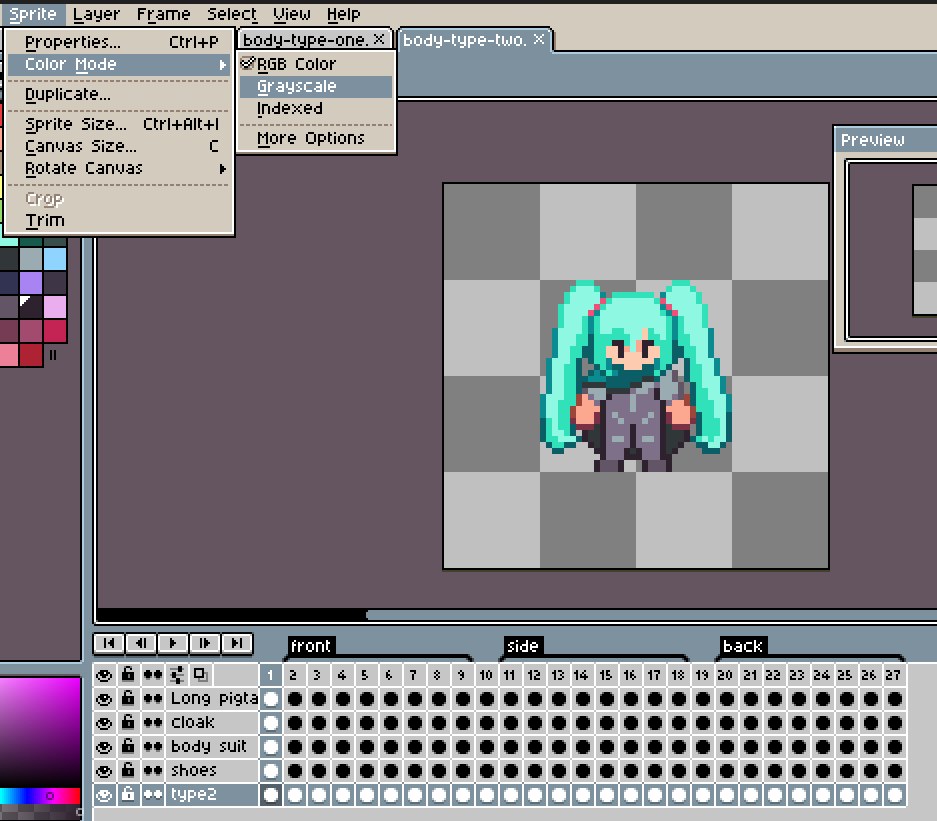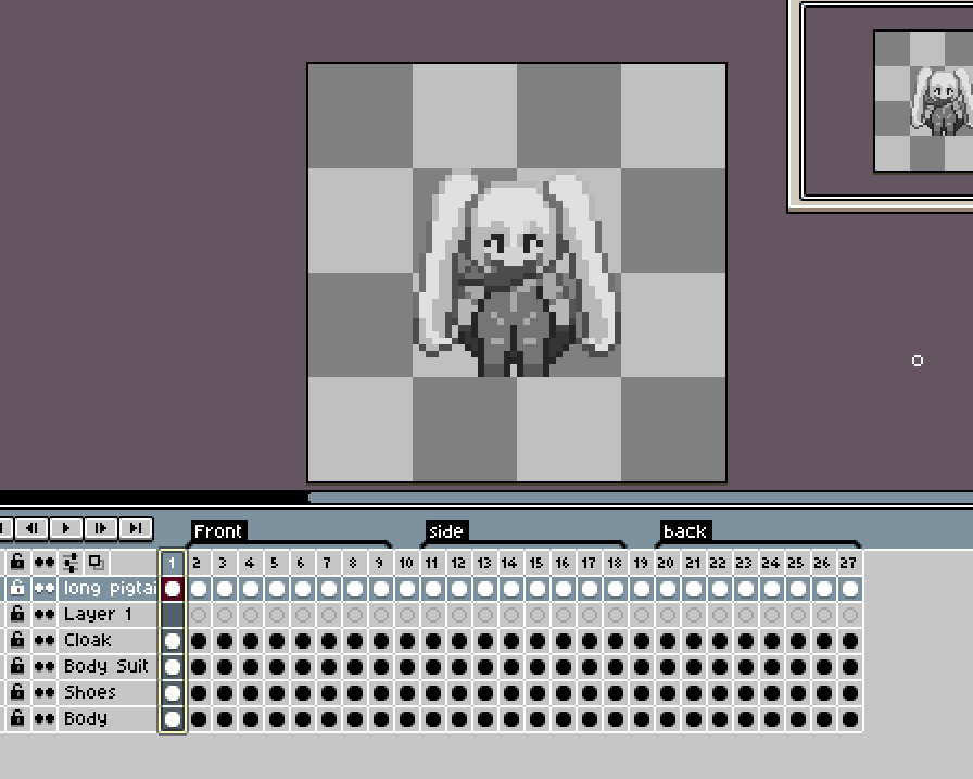 It's been a busy month so I haven't had the chance to work on it everyday, but I wanted to share the wip! All of the layers are separate and I made two different body types. I worked in color but changed it to gray because I realized the colors can be modified in a game engine. I'm going to export each layer on separate sprite sheets, and I want to add some more hair and clothes options.