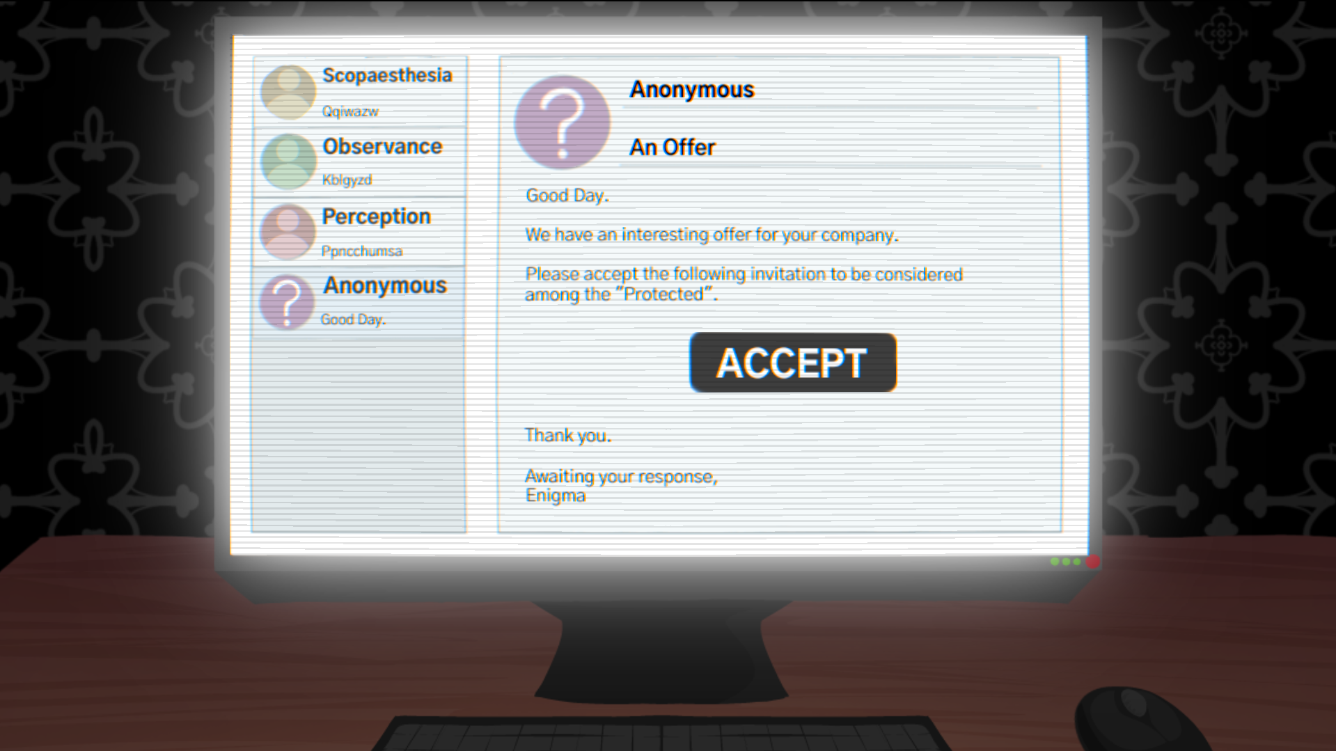 Surveilled is a game where the player controls a computer virus evading detection by disobeying the rules and orders set by the "command line", eventually leading to the programs themselves completely breaking.