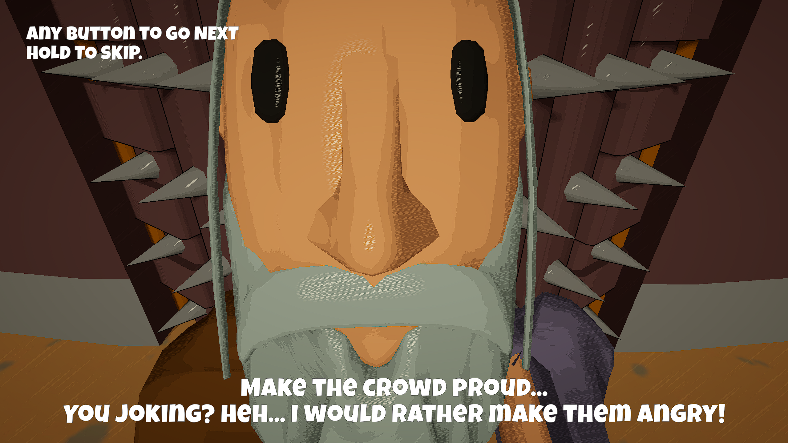 We have implemented this concept in several ways. First, instead of following the traditional arena rule, where you win by killing and entertaining the crowd, we inverted it: you win by reaching 100% on the rage meter. The crowd must hate you!