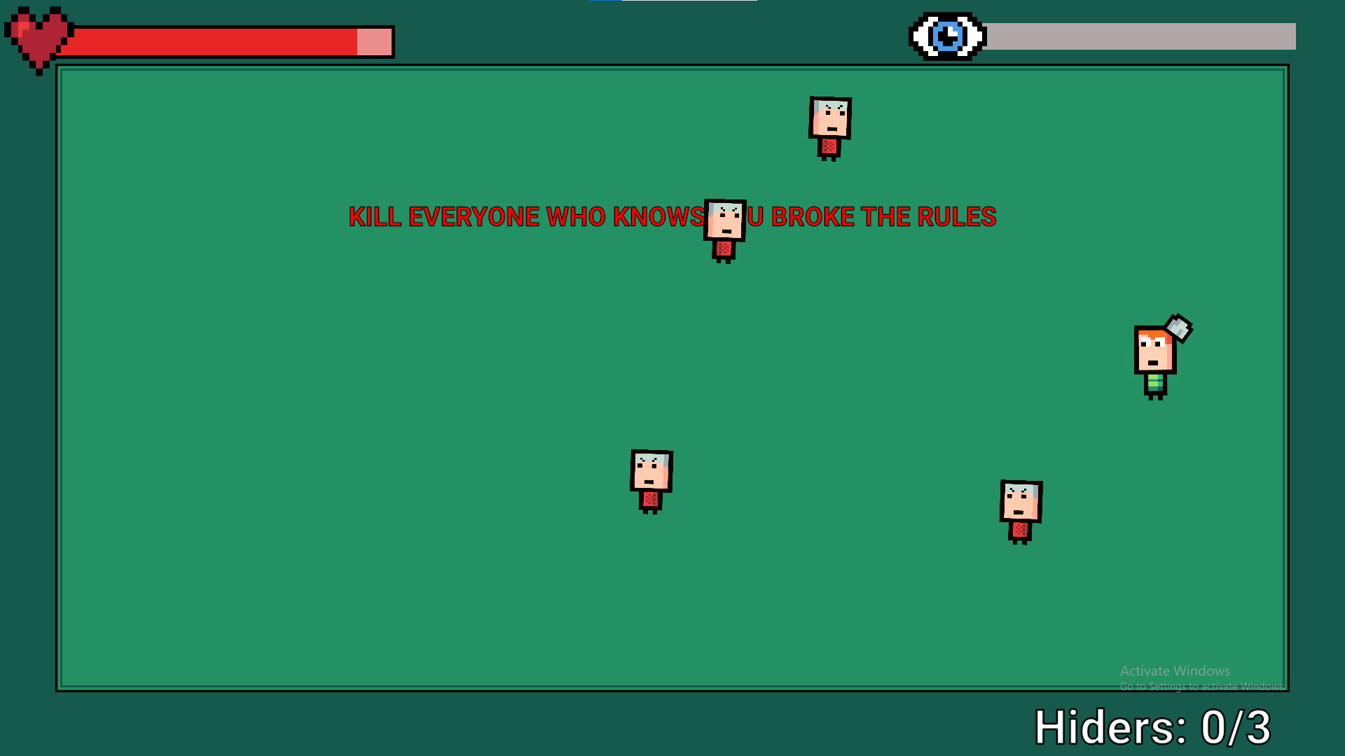 My game is about playing Marco Polo where you can break the only rule by opening your eyes. Enemy's who see you cheat will attack you.