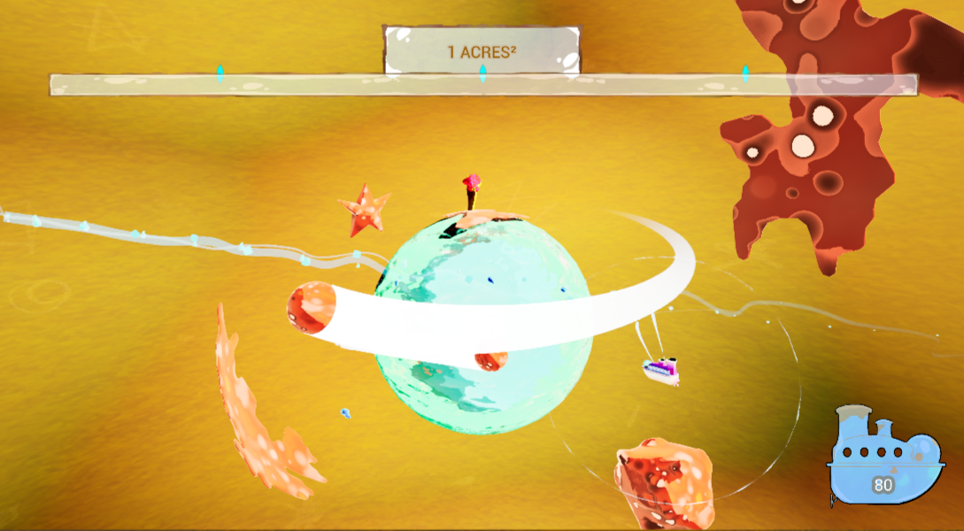 The planet measures in square acres, and also has a surface of 1 acre originally. Apart from that, It also posseses an acre tree. I think the optional theme is self explanatory.