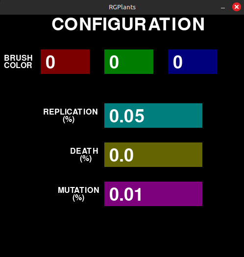 I was left a bit confused by the menu though: I was not able to edit any field other than the death chance (which I got stuck a few time on random high values, my bad T_T), and it looked like my cursor was still planting colours in the garden while I tried to click on those buttons.
