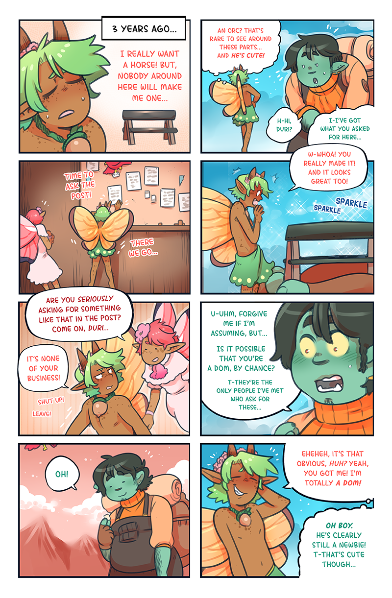 A comic where a big subby orc gets dommed by a fiesty little fairy!