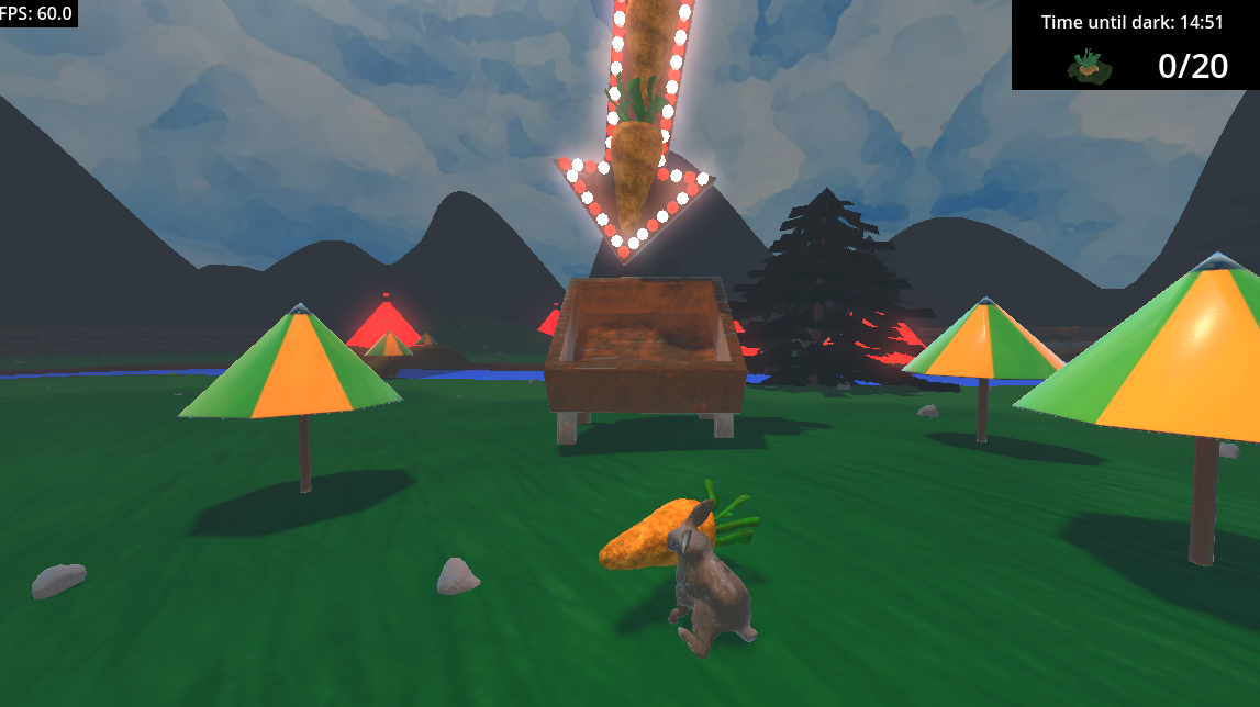 At the start of the game I thought the camera and movement control were not good but by the end of my session I think you made the perfect choice in controlling the rabbit like a car as that is what was most enjoyable about the experience.