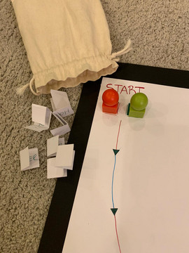 The game can be played with 2 or more people. The goal of the game is to find and sing a song about the word written on the paper you pulled out of the bag before the hourglass runs out. The rule of the game is that if you can't find a song...