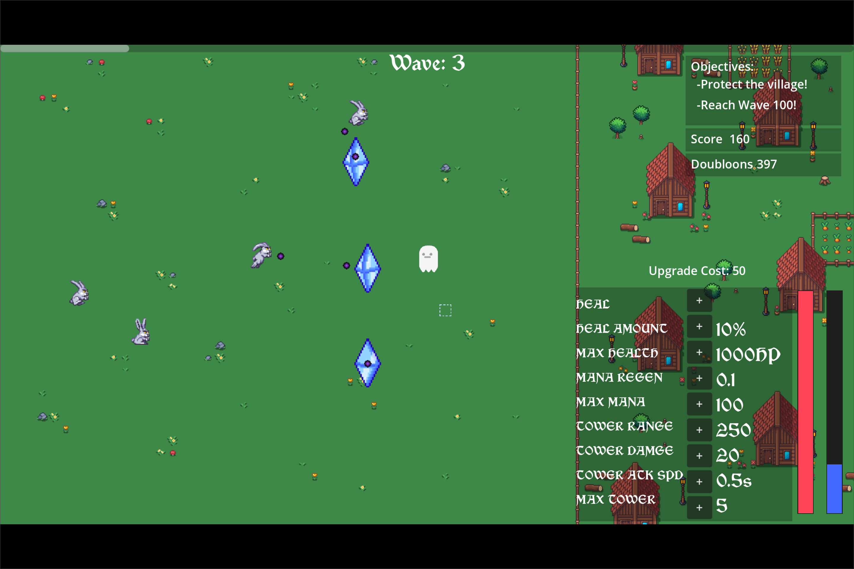 As a previous resident (and ghost), protect your village from evil forest spirits! Can you reach Wave 100?!