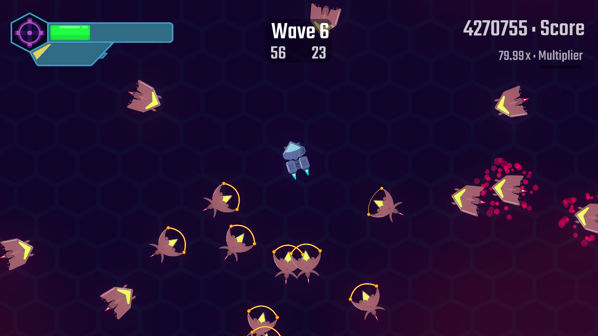 I definitely enjoyed the mechanic of absorbing attacks to power your own and I feel like it was executed well. I have to agree with martin with regards to the controls. I think adding a button would have declutter the one handed controls, but that is just my preference. The combo system really added tension and left no room for error or else your high score is jeopardized. A really good submission overall. Well done!