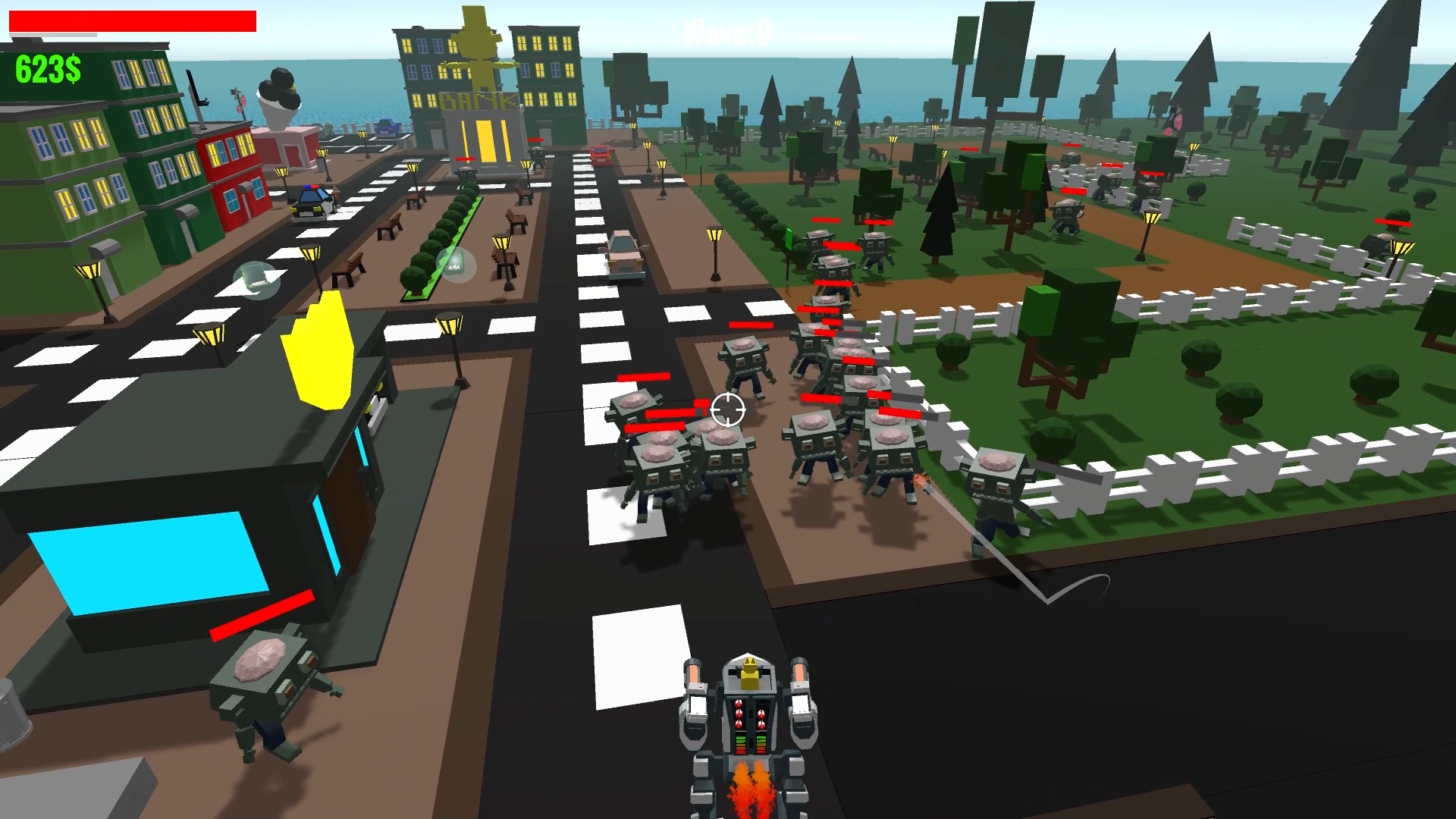 the lack of feedback that you are getting hit is kinda bad, sometimes I feel like I died from nowhere, tho, this game has the BEST aesthetic ive seen so far, and has a fun gameplay, controlling the robots feels really good, I think this project could really benefit from a later update!