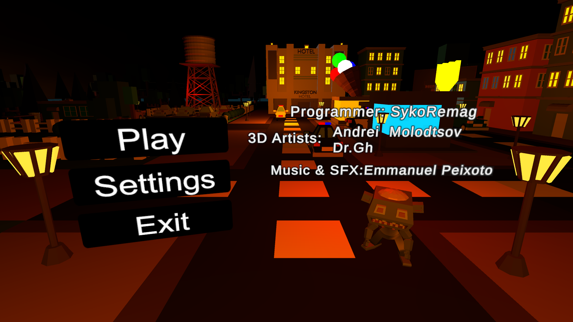 The cat on the robot is really cool, the models of the game is also really awesome, the movements and controls are also really smooth and nice to play with. But I wished that there more sound and visual effects to the game, they can really add a lot! :D