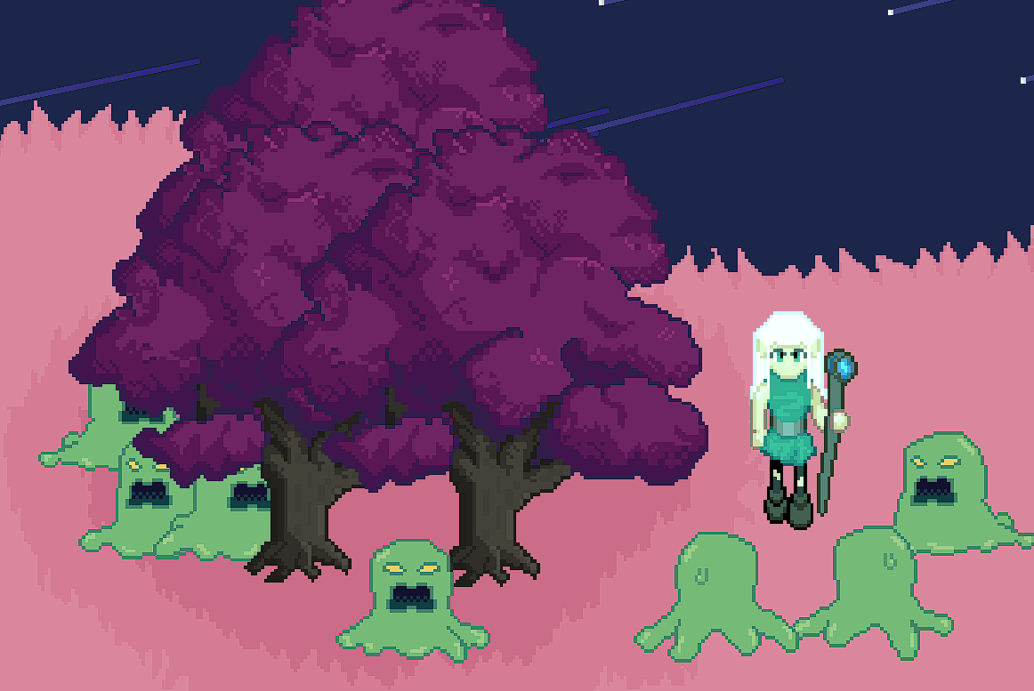 Nice retro art style, oh BTW the slimes can get caught in the trees.