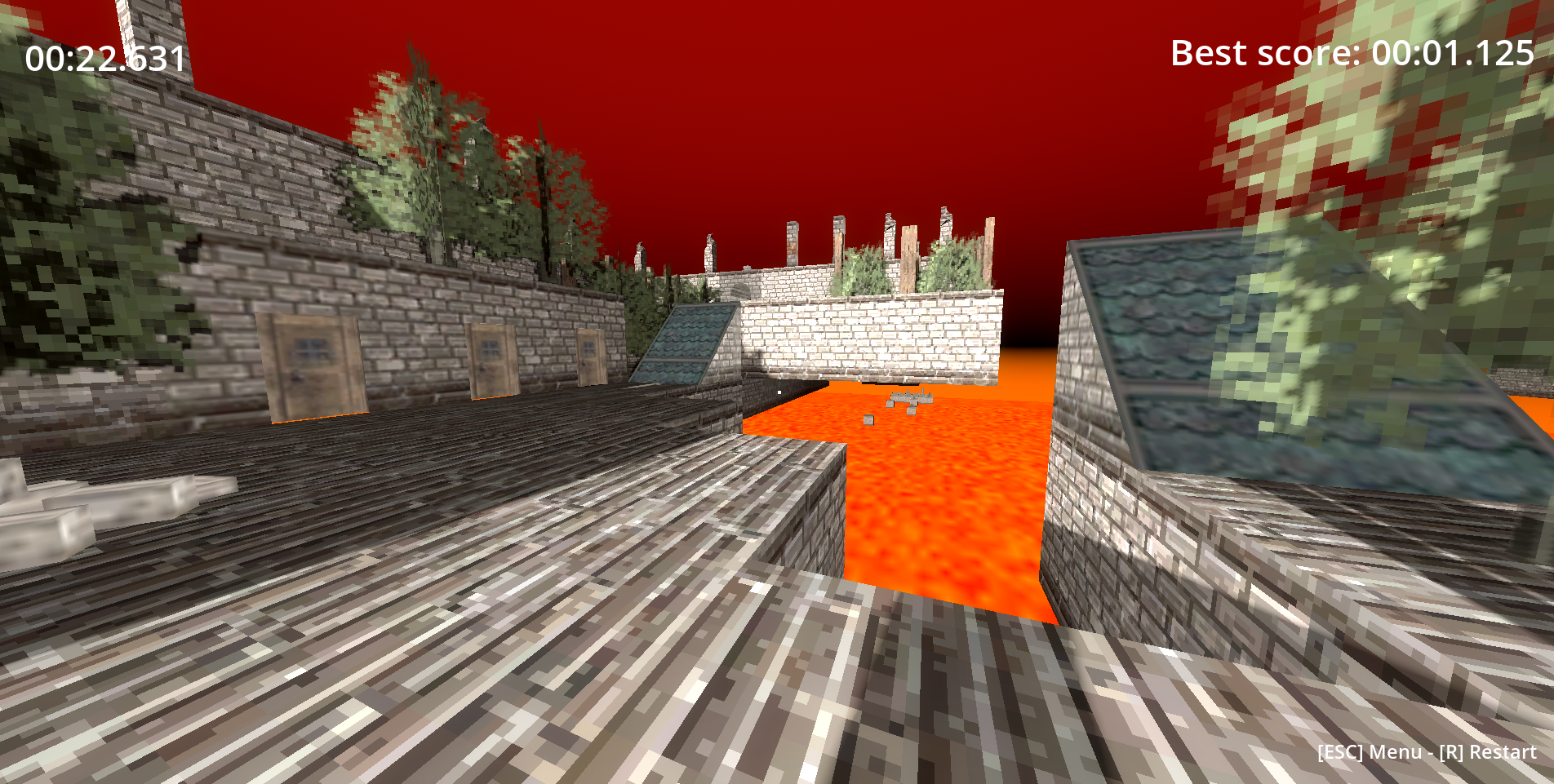 unique and good! the footsetps sound funky, also sometimes controlling the speed is a bit much, but also im no expert in First Person Platforming so could be just me lol, either way good work :)