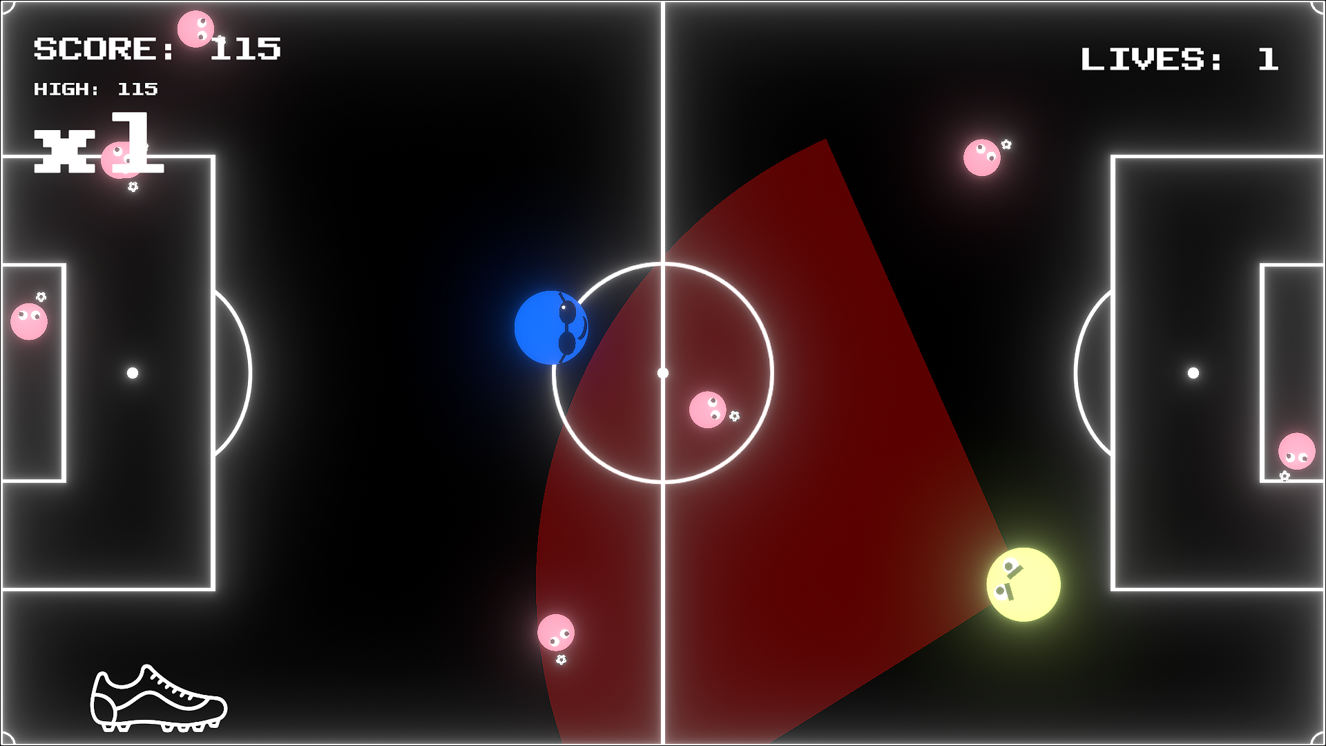 Game was fun but at some point it becomes impossible to lose. If the amount of points required to get an upgrade increased exponentially i think it would be more balanced. At this point the ref is blind and I cant even find a way to end the game. The sound effects and visuals were really nice tho. W game.