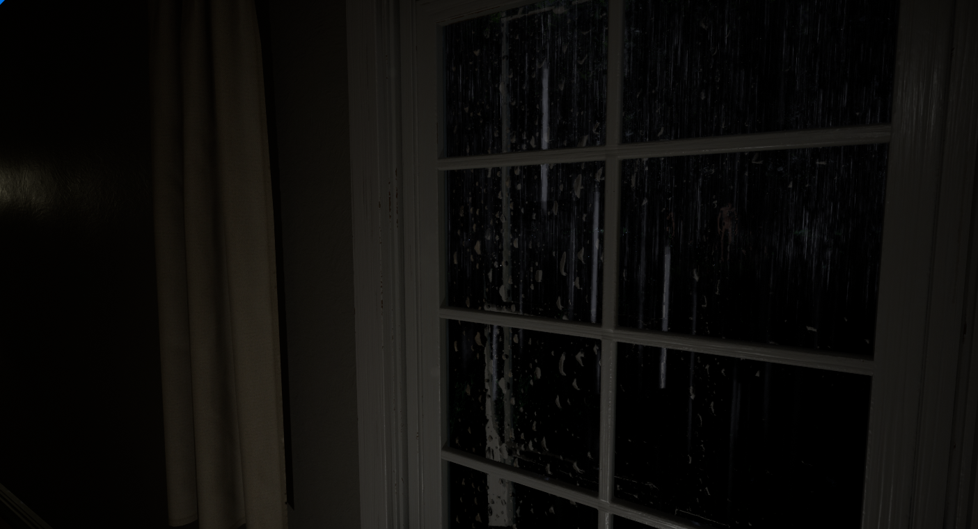 For what I did play I'd say, the rain VFX and SFX are very atmospheric and I like how the volume is based on the distance from the windows. The thunder was quite nice too. Its also cool you had an inventory where I could see previous notes and stuff.