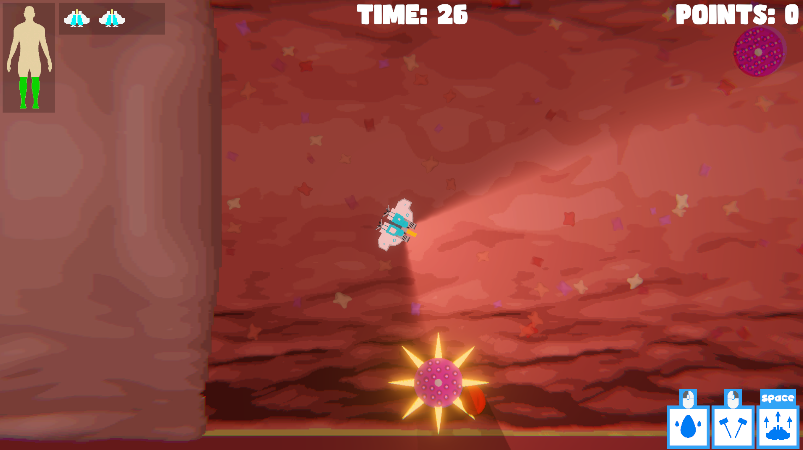 Nice game. I got similar idea but you are a white blood cell.