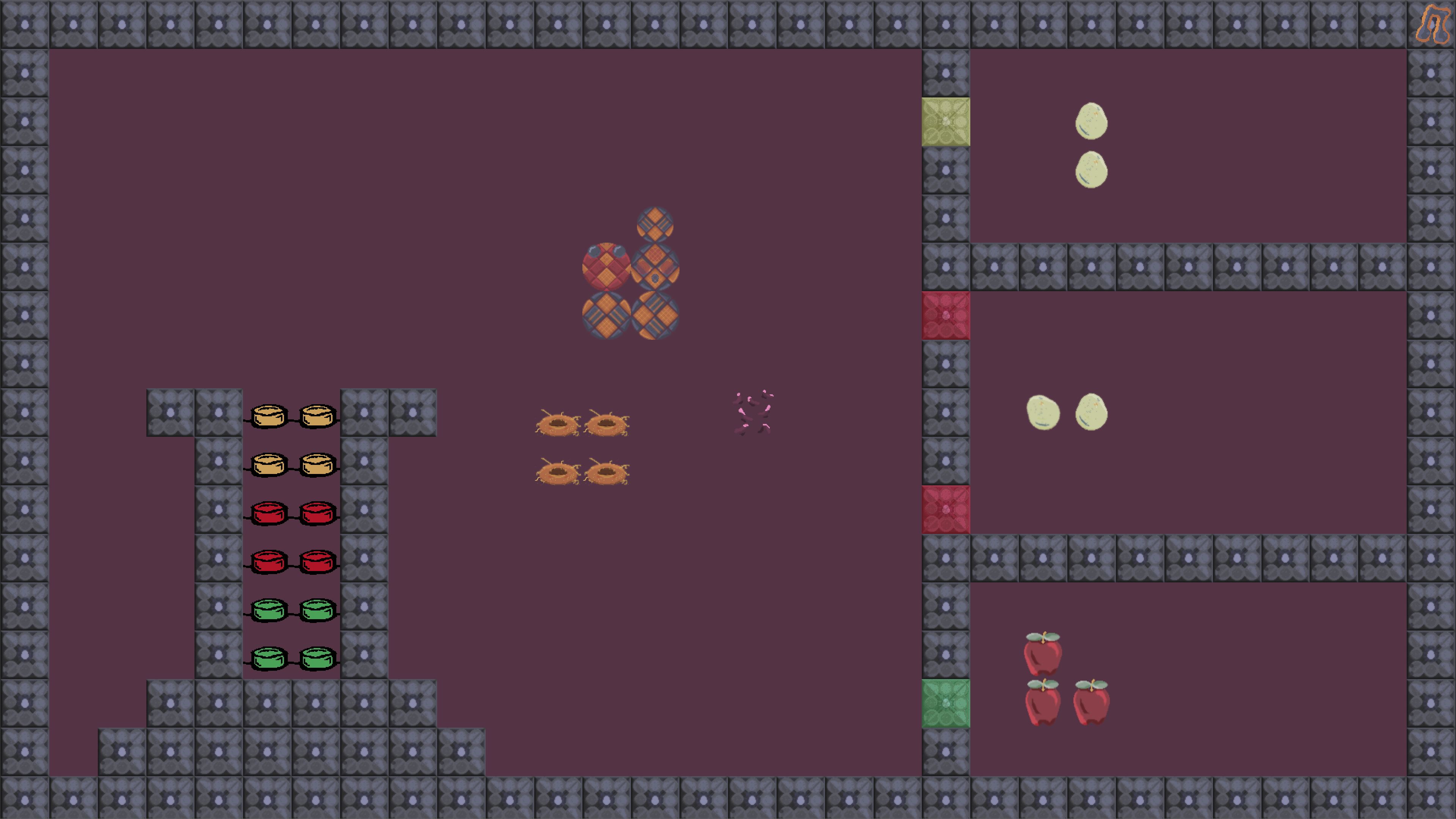 This was really cool! I'll tell you what, I loved the undo button, it was just incredibly handy for if I overshot a tile by one or miscounted a movement slightly, it was just so much nicer than being forced to restart the level, and even the puzzles were great! There was a few times I looked at one and thought, "Yeah I got this" only to realise on the last button or egg that I'd set up the level wrong to complete it, haha