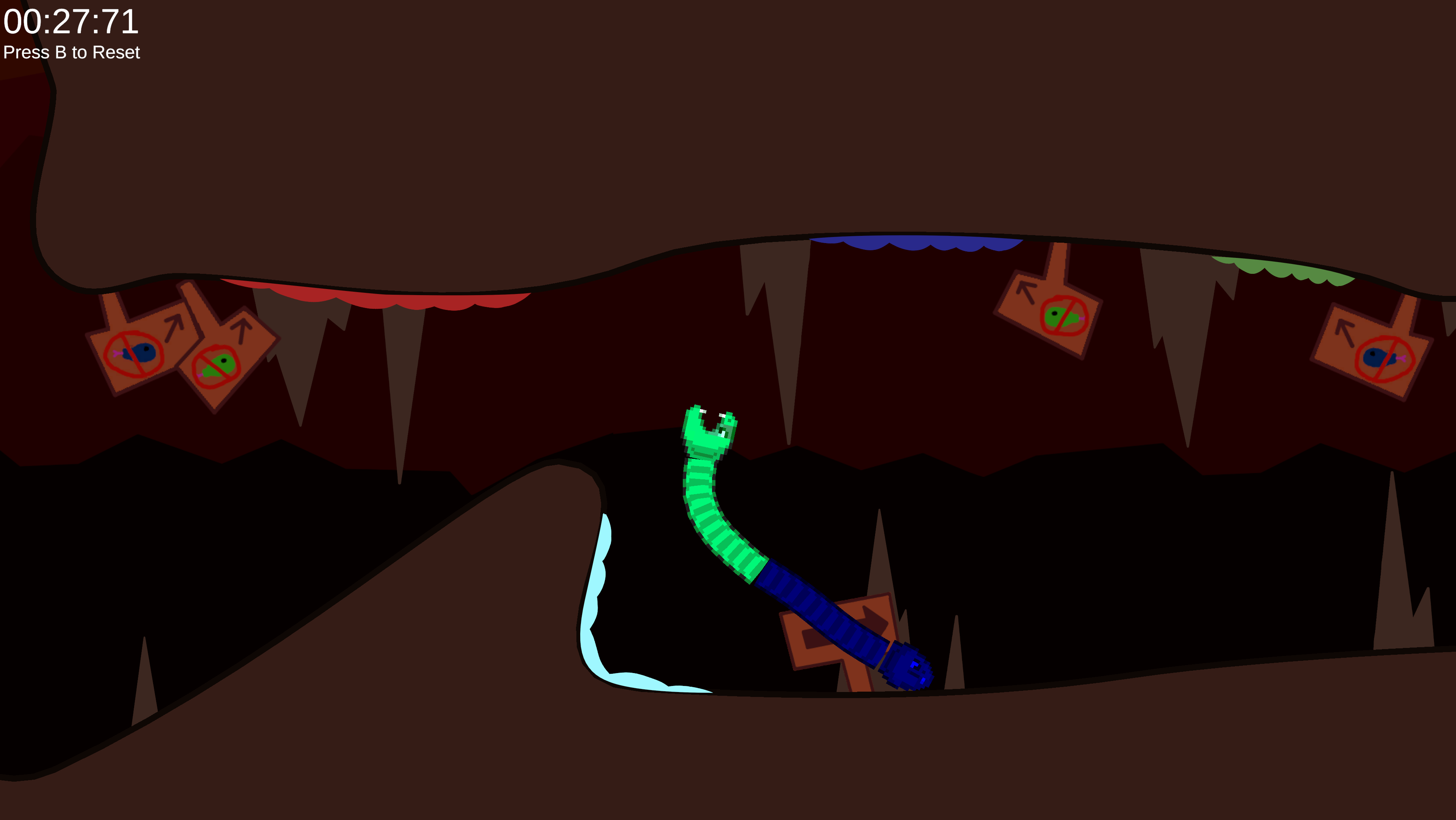 I didn't have another friend to playtest with at the time, but even just two handed, it was pretty fun! I really like the concept, I think I may have cheesed the levels a bit by going above the rocks instead of under where the goo was, but it was still fun to play!