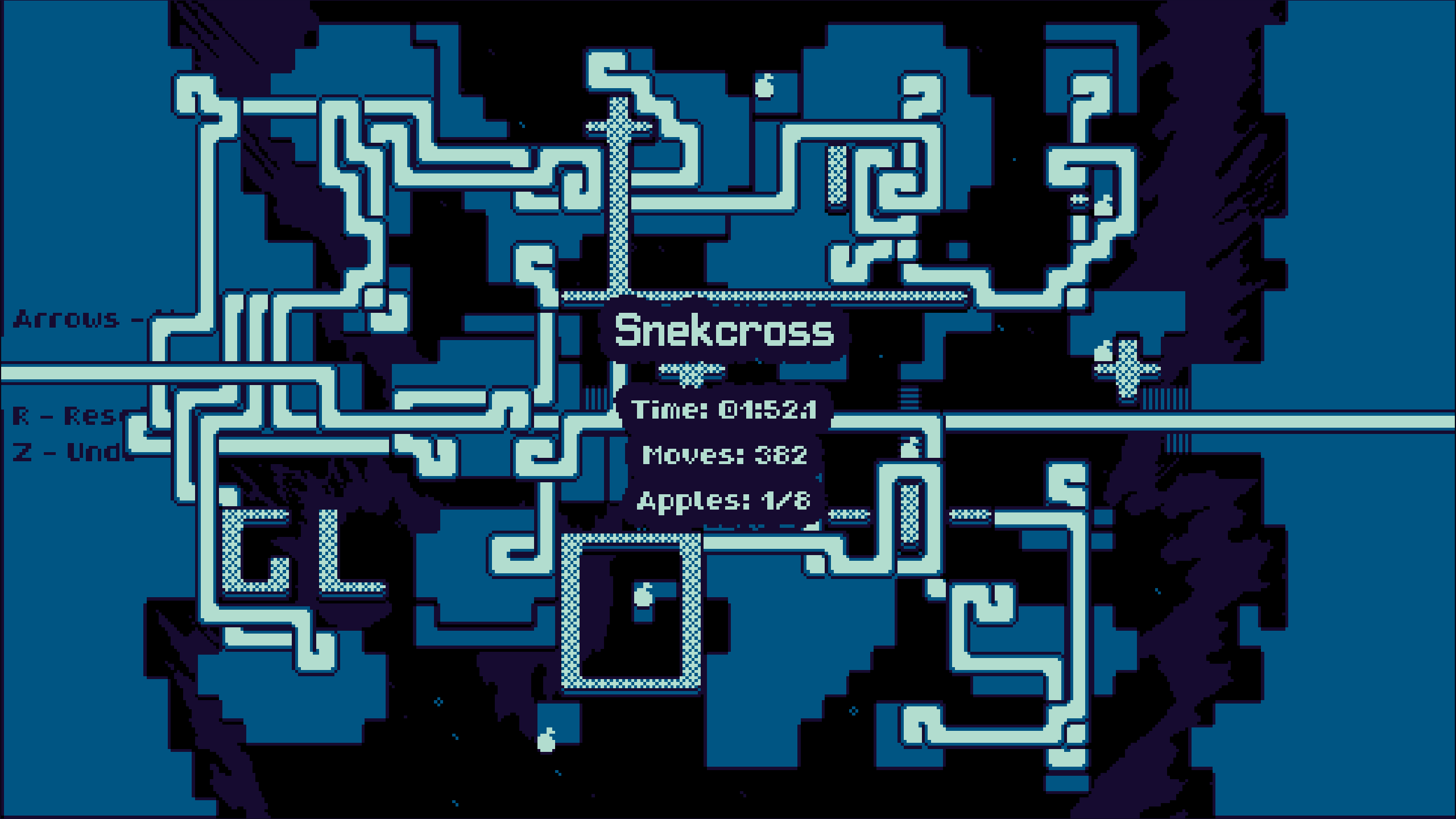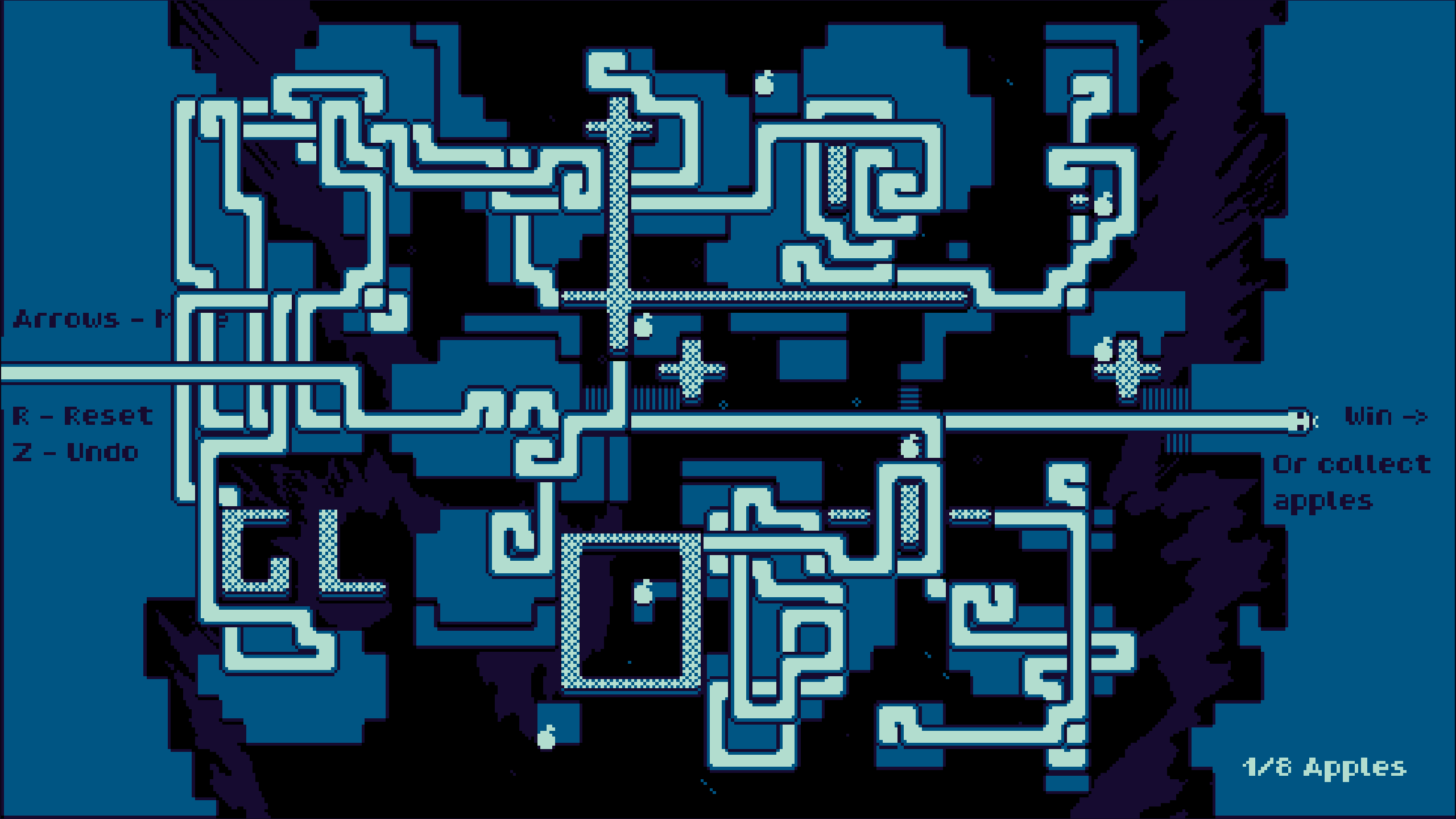 This game is really cool! I had a ton of fun with these puzzles. I ended up getting all 8 apples before realising I trapped myself in one corner.. Still, a lot of fun! It felt very unique, I defiantly wasn't expecting the shwoop when I went over the tail for the first time π