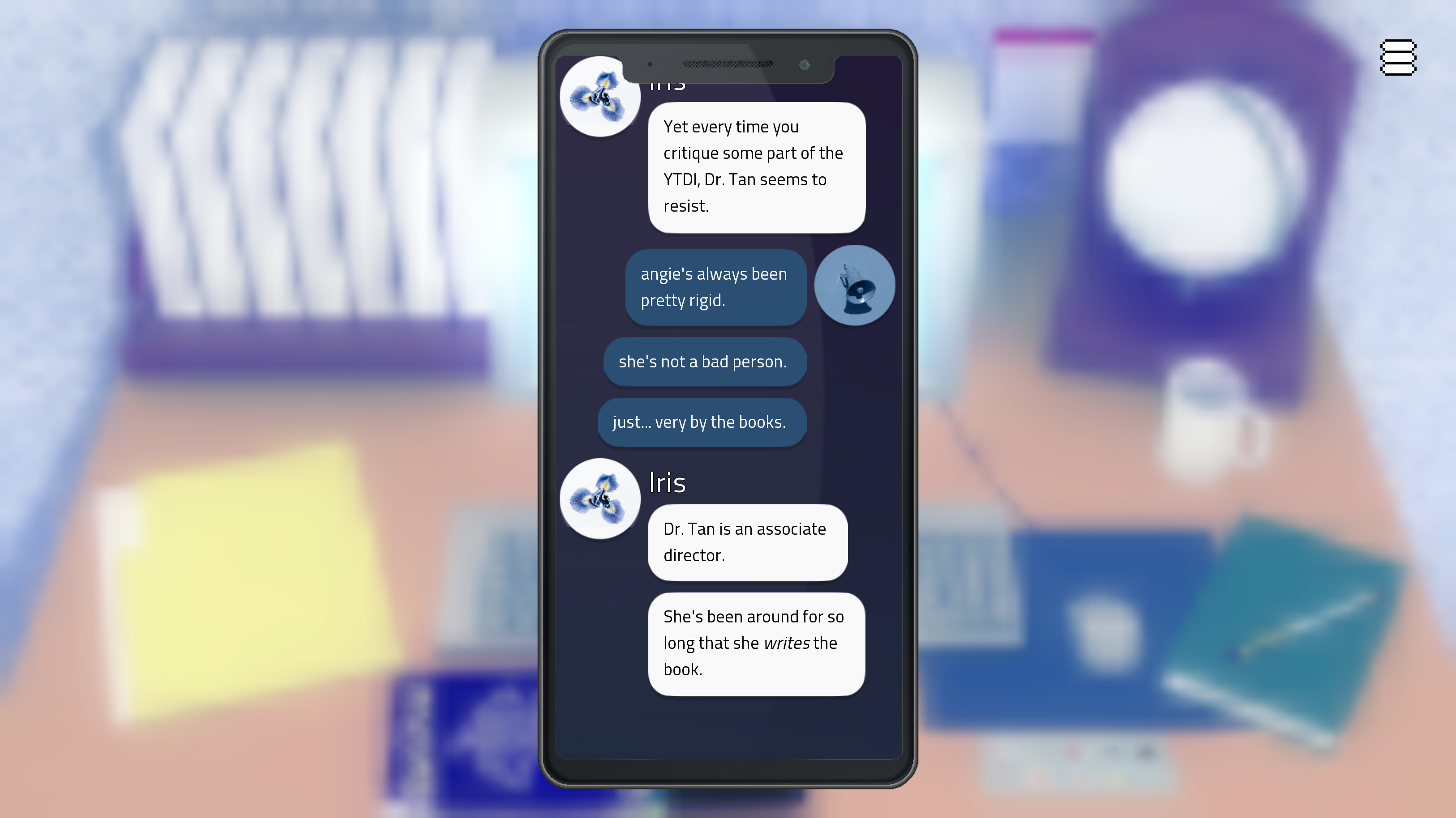 Well, this was one hell of a way to get me interested in MalViolence! The core story is so interesting, and the different ways it was conveyed helped keep me engaged the whole time; switching from research log, to journal, text message and video interview was a really good idea to keep things fresh. It also made it hard to put down! Even when I needed to do something else, I kept thinking, "I'll just see this next one!" ...and before I knew it, I just played through the whole thing! Dr. Deirdre was such a great protagonist, and it was great seeing her grow from someone more or less complacent, believing it was possible to reform STOP from within, to someone willing to take actual action against them. The climax of the story was so tense!