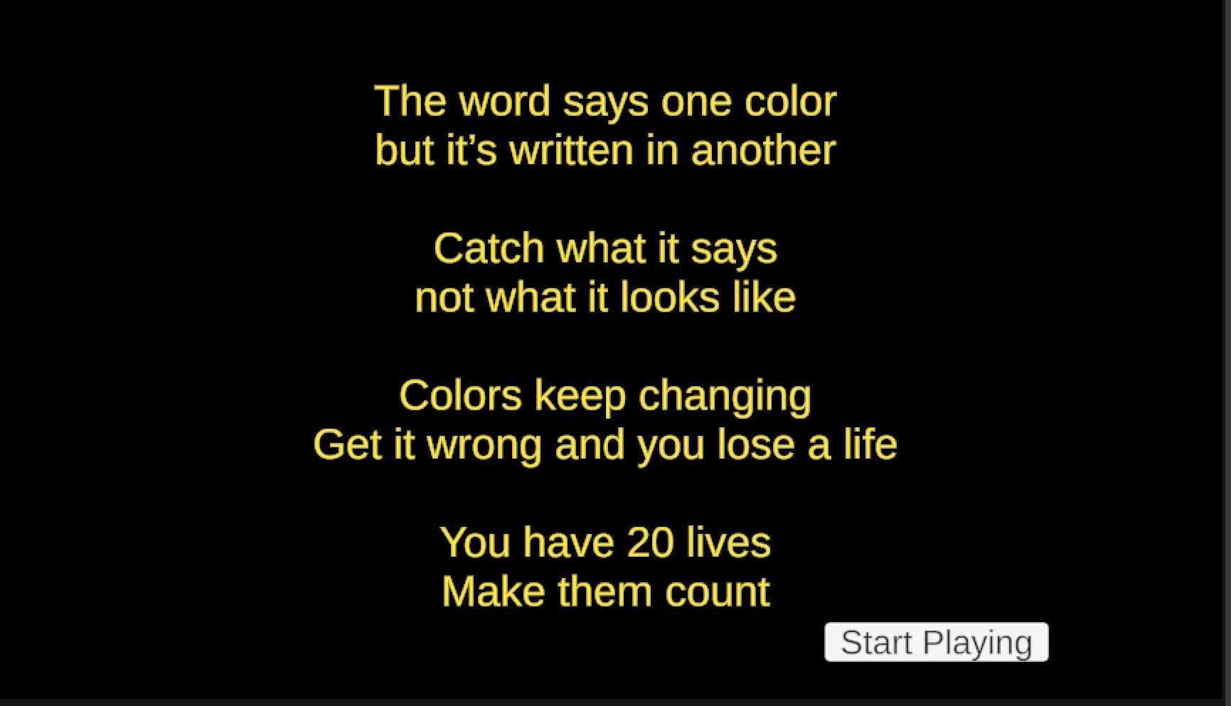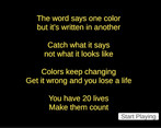 Totally agree with the comment below regarding the idea :) you can also expand it to shapes, movement styles or switch the color/word focus as mentioned below as well :) really neat idea of challenging focusing abilities! I hope you will continue this game and we'll see how it progresses :)