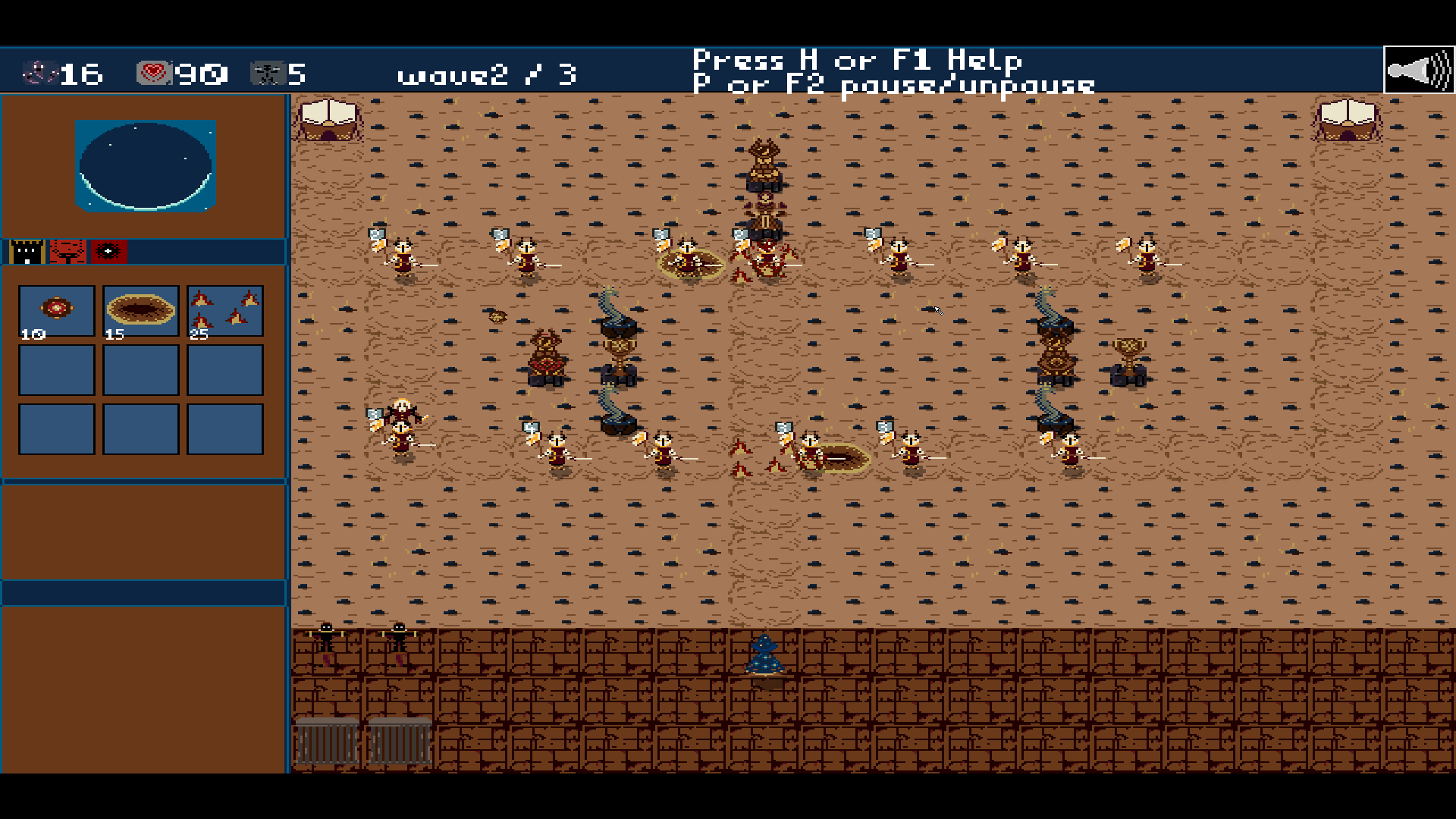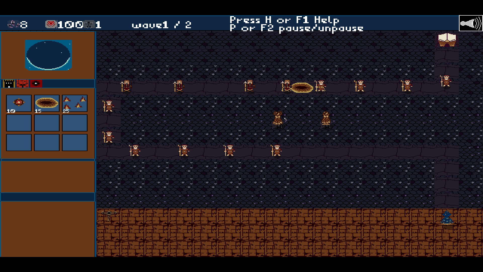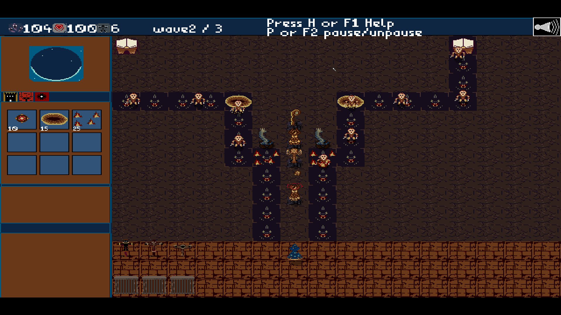 So, overall, very fun and satisfying TD game! I like TD, but don't play too often, so don't know the current state of the genre. I think the "torture" mining feature is a nice added strategic element, though it seemed that I would max out at like 4 souls, so not sure if I was doing something wrong? Was there something else I could do to increase my capacity (I mostly built the two different types of crucifixes, but got up to like 10 of them). The differences in towers is interesting, but by the end I mainly focused on the snake for armor piercing, and the long range one that is 60. I don't know if I missed it, but I didn't realize I could upgrade towers until the last level! Didn't seem too necessary though, but adds another interesting strategic element. The art works, and the different enemy types are good. One note on the first level, you should make the enemy path more clear. I figured it out quickly, but on my first look it was confusing. As you're working to balance and design the enemies and towers, you might want to check out this video by Steve Lee about orthogonal design: Every game designer should understand Orthogonal Design . Basically it's about how when you're designing things, you can simplify the design by making things categorically different, rather than just increasing/decreasing stats. Like the snake tower has a clear purpose that is different from all the others (armor piercing). But that long range tower is just a stronger version of the first tower, so the first tower stops being useful other than being a bargain. You've kind of already have some of that, though I never saw much benefit in the fire or area attacks. You might be able to think of creative ways to make that more clear. There's some places where you can polish, like some of the clicking interactions aren't smooth, and the UI can use some work. Also the pixel text is kind of hard to read. But overall you have a really strong core, and I didn't encounter any bugs. Great work!