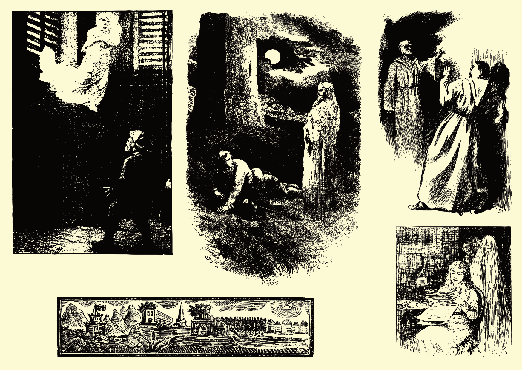 16 historic illustrations depicting ghostly encounters