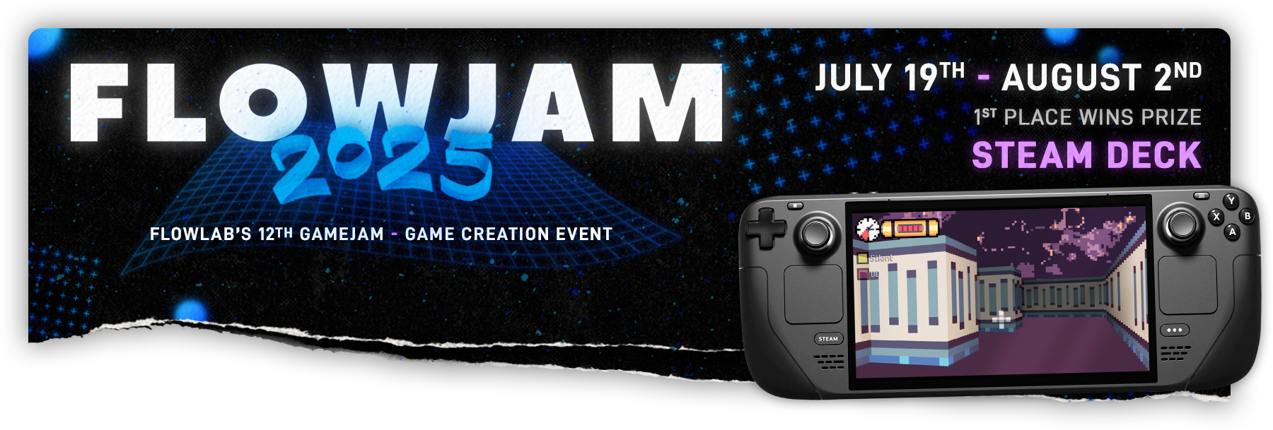 What can I win?The winning developer will receive a Steam Deck! You can see and play all the Featured Flowjam Entries and more Flowlab games on the Flowlab Games page.