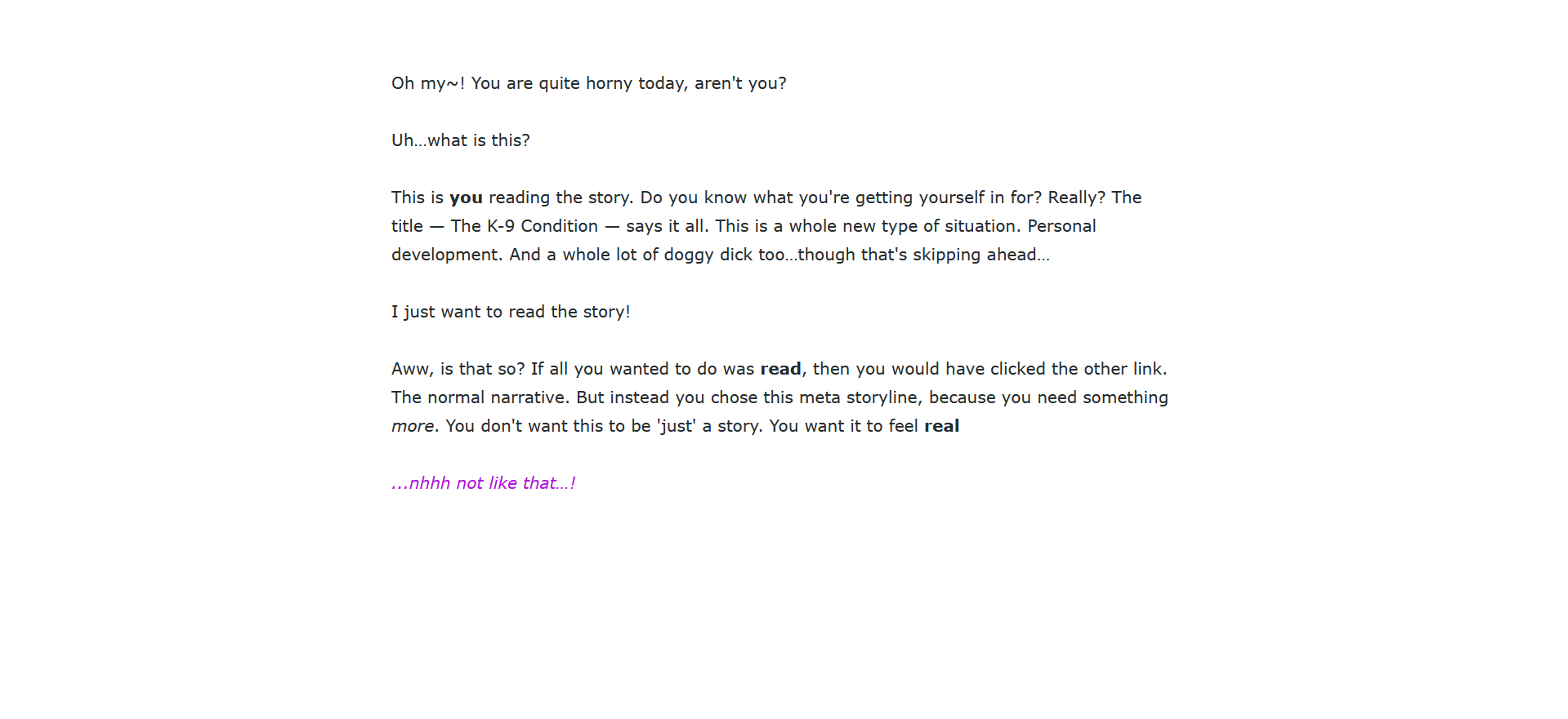 The K-9 Condition's itch.io pageMature/NSFW content?