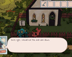 Really liked the graphics and cute characters! I did find it very confusing though what main goal was. I also found a bug if you fix and pickup the lawnmower before talking to the lady, which broke the game and I couldn't interact with anything, so I had to close the game and restart. But otherwise really cute game!
