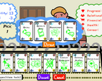 - Life coach character development - where life coach collects cards outside of the card game, and each of these cards actually have different passive effects or uses outside of the card game