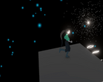 Very hard to figure out what to do and how. So, for example, we need to go on walking on the moving platforms, or jump while running (shift) to fly between cubes in space. Very interesting gravity game, but very frustrating to gamers who want to succeed : it's too frequent to go quite far and fall to the beginning with a bad jump/fall ^^" A better collision gameplay/visual would help to make a better experience. It remains very poetic with this minimalist graphics.