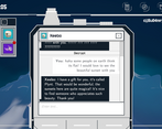 I think the game concept is super interesting! I like the Chants of Senaar-like encrypted messages. I also think picking aliens was the perfect medium to exemplify understanding those different than ourselves. I also appreciated the zoo tycoon-like aspect of placing down different items and being able to decorate our own little planet just to your liking. I also though the icons for the aliens being from other media/platforms was a really interesting and unique choice! There were a few issues I had with the game though. Namely the lack of instruction. I was unsure what was actually progressing the game or why I could decrypt some messages but not others. Also, before being able to understand a message, I didn't really know what exactly I should be typing. I ended up exiting the game after talking to the second alien a little bit because I just didn't have much to say and didn't understand what I had said to the first alien to answer whatever question I was being asked. The aliens also gave very basic responses and did not bounce off of what I was typing as much as I would have wished. I love how personalized everything is besides the dialogue, but I think this game might benefit from being able to choose between predefined dialogue choices so players could experiment with what works and see their tangible progress. Although it would be a lot more work I think it would make for a much more streamlined player experience! Also finally, the music. I loved the title screen music, but the lofi music selections in game, while chill, I don't believe completely matched the vibe of what was going on. I would love to see some original tracks that really embrace the floaty emptiness of space and can better capture the exciting and mystifying feeling of communicating of beings from different planets. Great job and really unique game overall! I'm really invested in this idea!