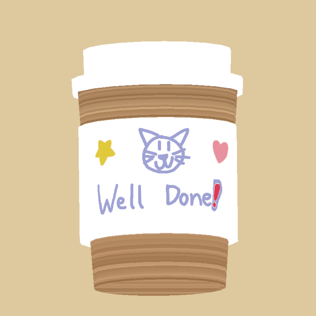 The animation for putting the label on the coffee cup is a really nice touch. Well done!