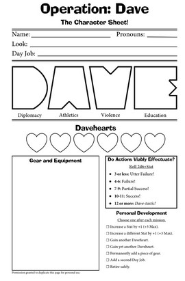 WHEN YOU’RE IN TROUBLE... WHEN THE POLICE WON’T HELP... CALL OPERATION: DAVE! Operation: Dave is a secret organization of trouble-shooters, crime-fighters, and talented amateurs (all named “Dave”) dedicated to helping the exploited...