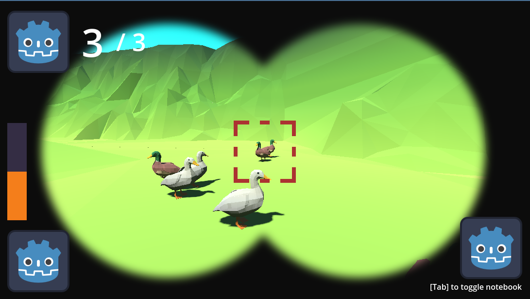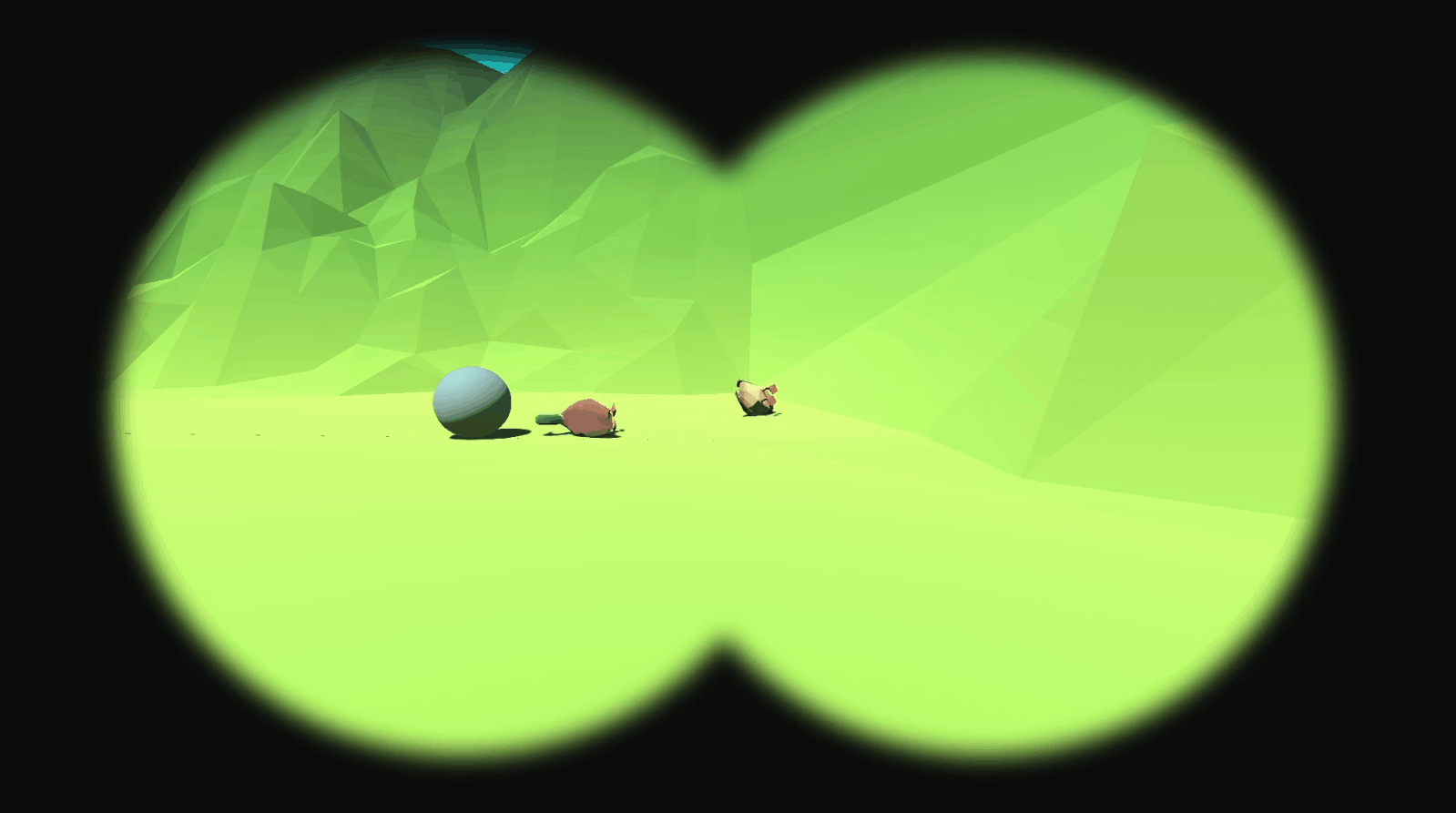 So, when the theme was announced I was thoroughly confused because I’m not from the US. But if I’ve never heard of the kids’ game, I have heard of both ducks and geese and birds in general. And I recently played someone else’s very fun jam entry that involved watching through a security camera so….yoink! Watching birds (cubes) through binoculars it is.