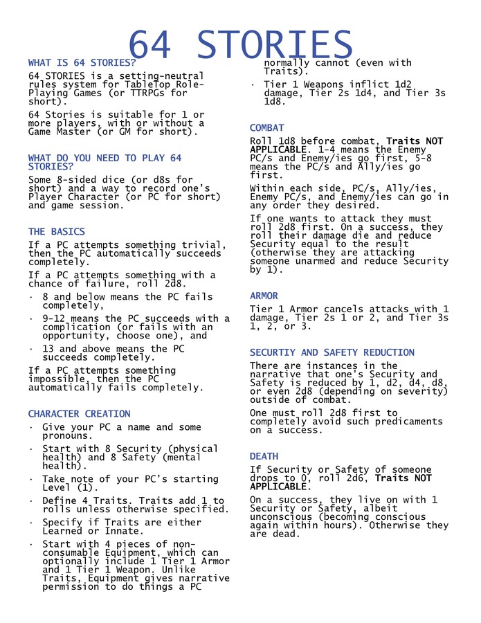 A 500-word setting-neutral TTRPG for one or more players.