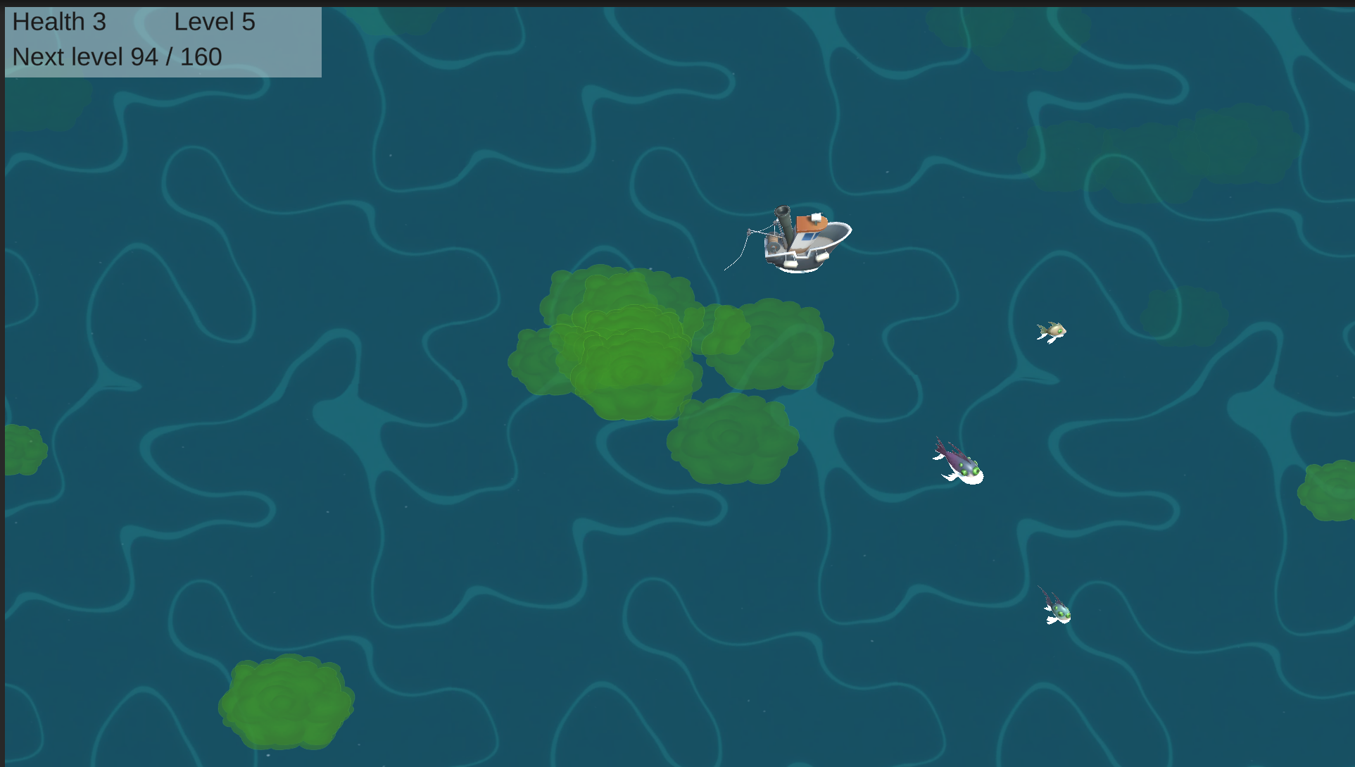 I found the game to be largely confusing. Half of the UI was cut off at the top of the screen so it was hard to make out how much health I had. Though my health never went down at all until the very end when I sat back and just let the fish spawn for a minute without me doing anything. That was the only time I ever saw the poison clouds spawn, though I'm still not entirely sure what causes them to spawn. The models and textures are nice though for such a short period of time.