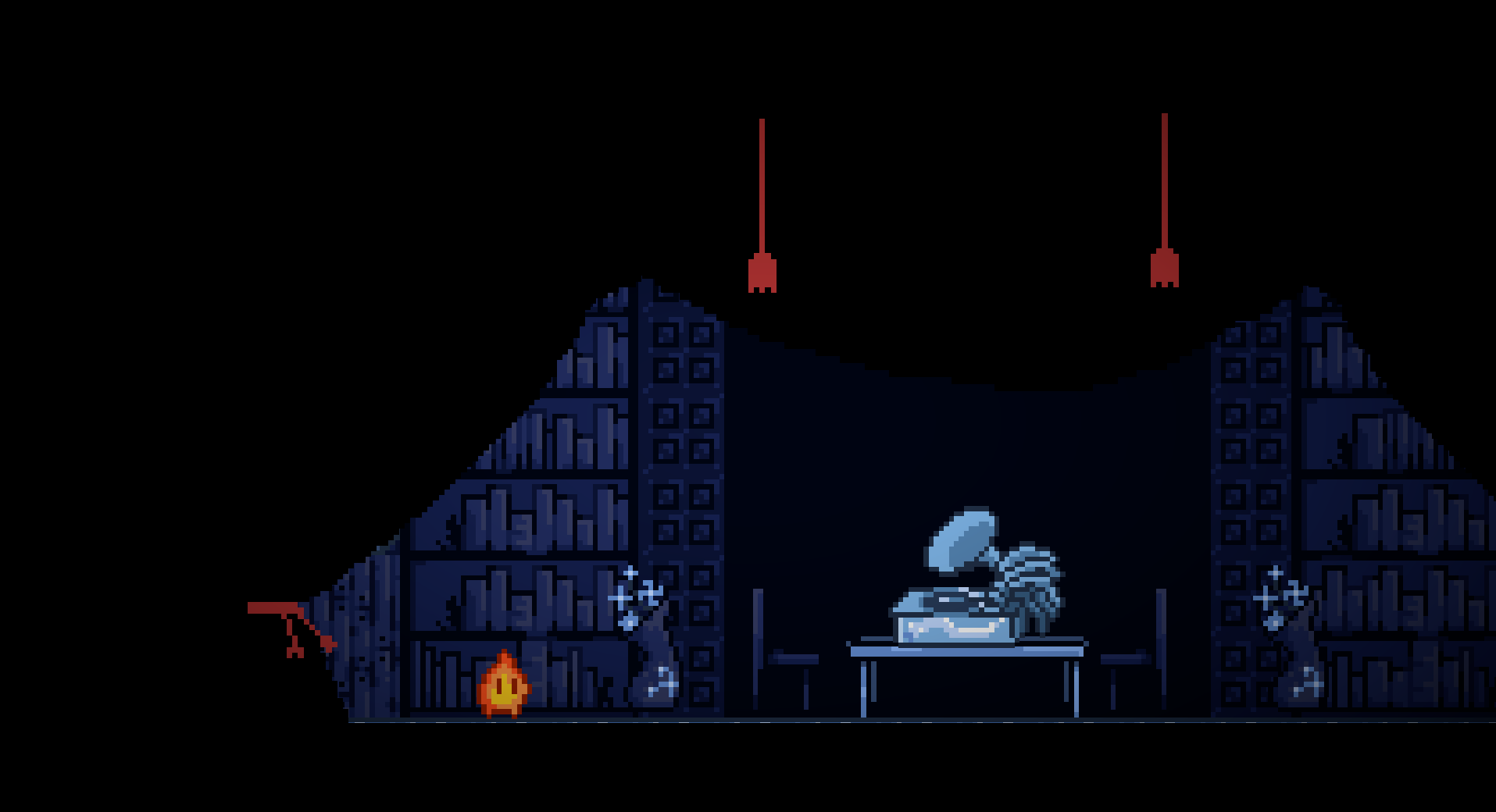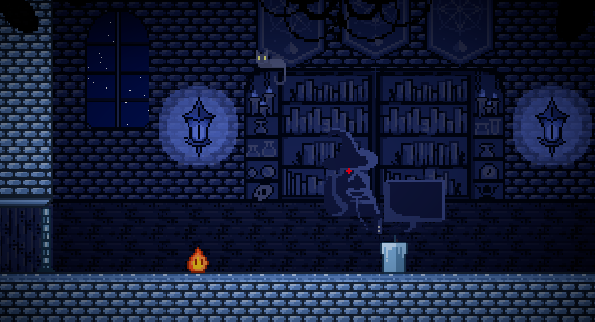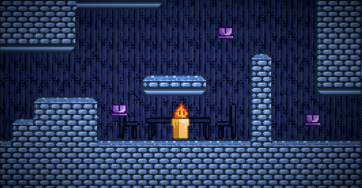 Game takes place in a haunted castle with objects possessed by spirits, and the player must sometimes leave behind their candle for a time to progress